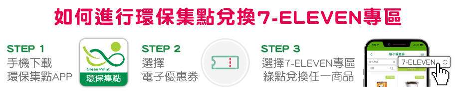 活動辦法:活動期間登入環保集點APP,兌換7-ELEVEN專區任一商品,即有機會抽中7-ELEVEN現金抵用券100元