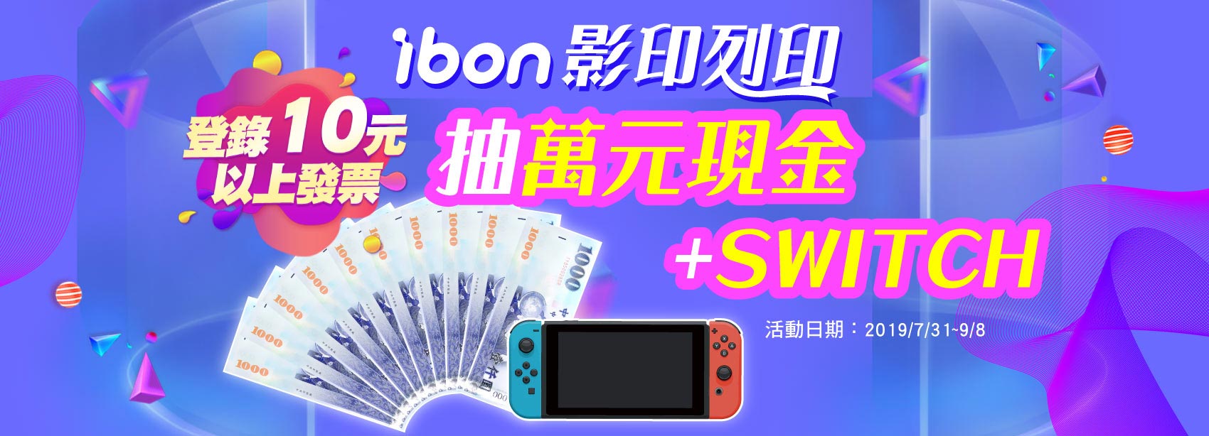 於活動期間內(2019/7/31 00:00 ~2019/9/8 23:59) ,至全國統一超商門市使用ibon機台,完成列印或影印服務並至櫃檯完成結帳並取得列印或影印10元以上金額之發票後,始獲得抽獎資格,唯每張發票限登錄乙次,且僅有一次中獎機會,如該張發票已辦理退貨,視同放棄抽獎資格辦理。