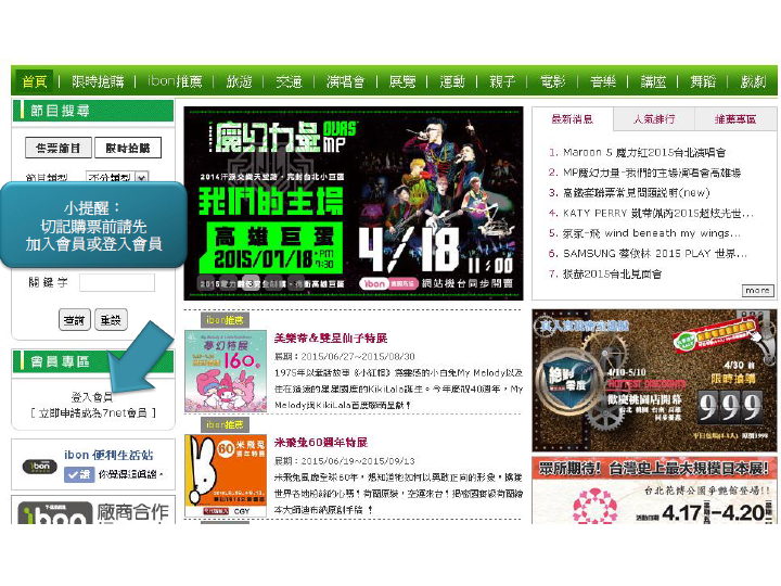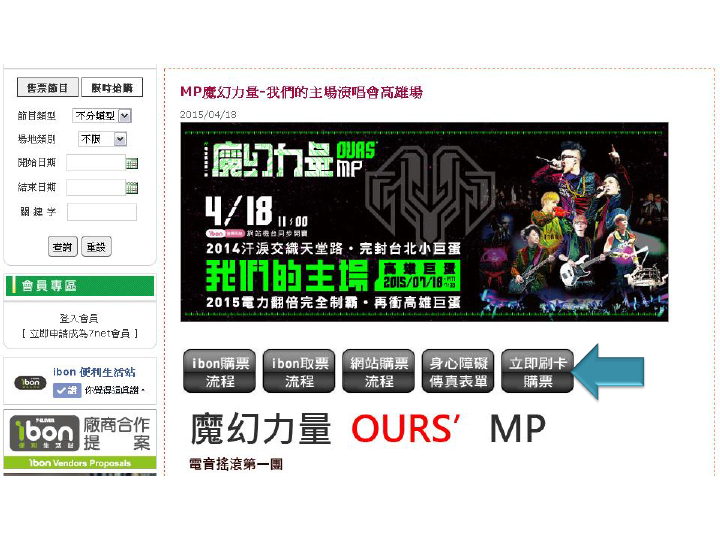 MP魔幻力量-我們的主場演唱會高雄場 ibon網站購票流程