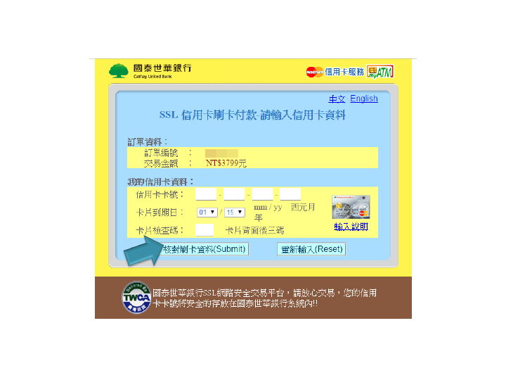 步驟10.轉至信用卡刷卡頁面