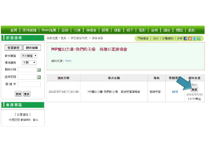 步驟3.點選MP魔幻力量-我們的主場演唱會高雄場最新消息