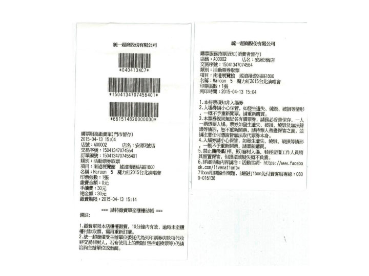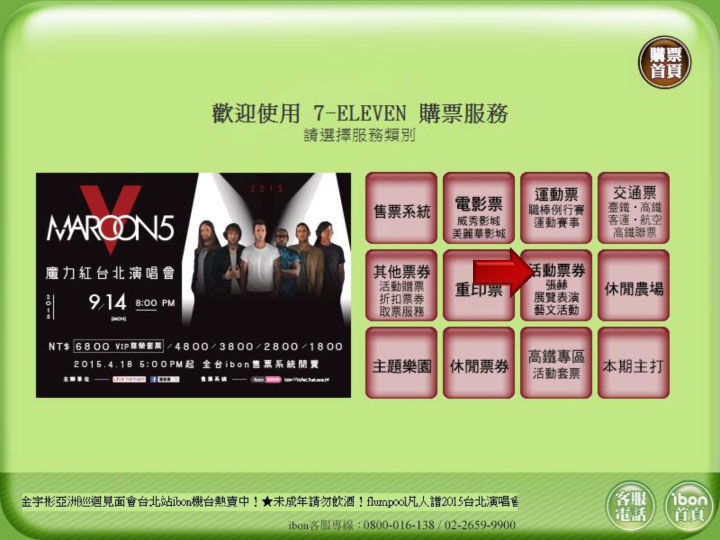 Maroon 5 魔力紅2015台北演唱會 ibon取票流程