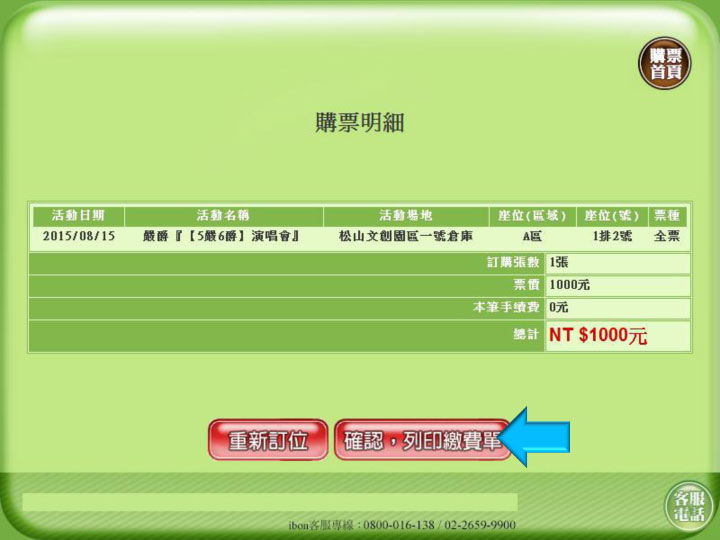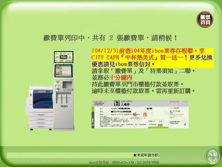 步驟12.列印繳費單並持取票單據至櫃檯領取ibon票券