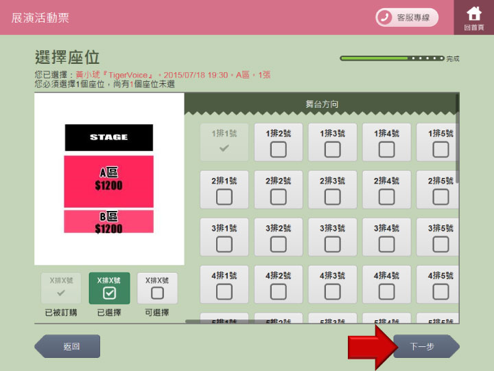 步驟9.依照購買張數點選座位
