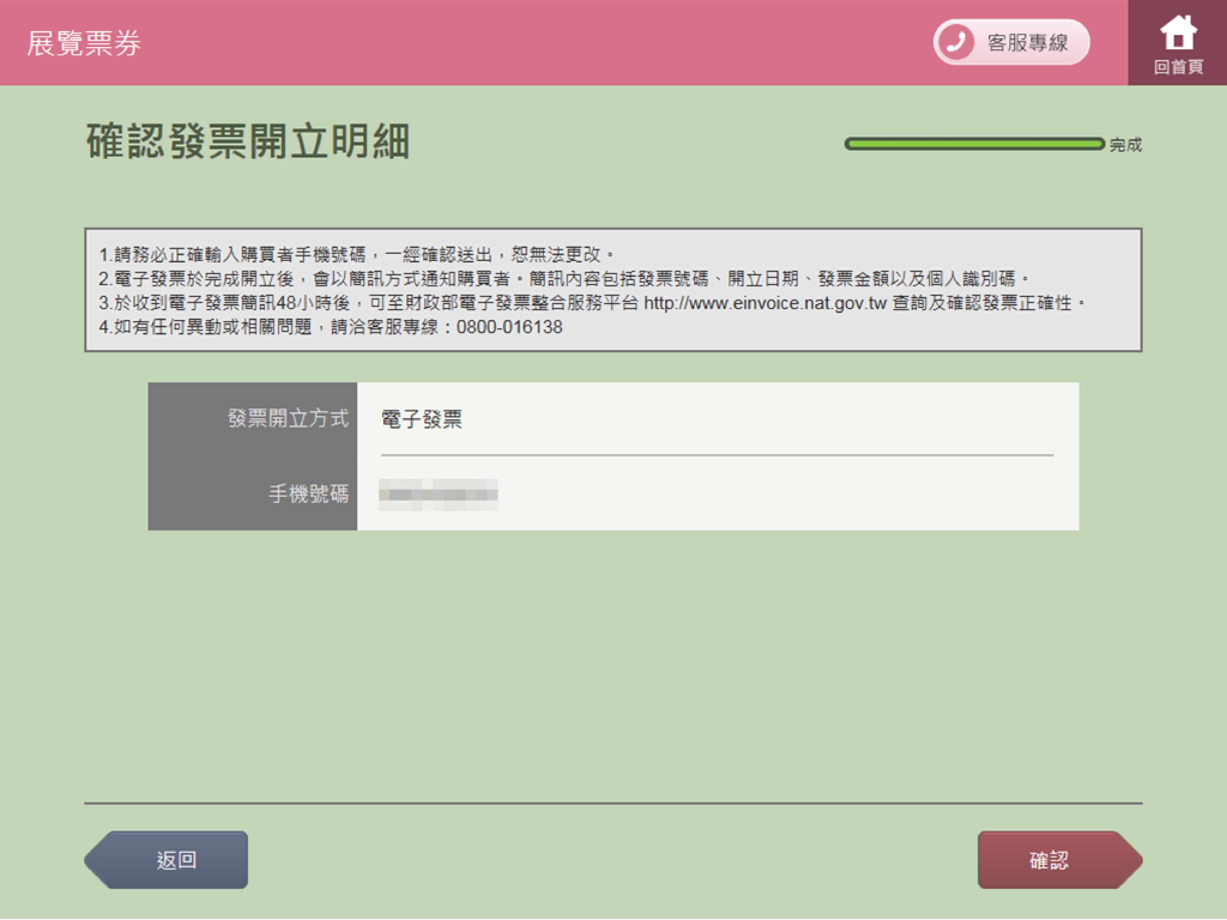 步驟10.請輸入寄送電子發票簡訊之手機號碼