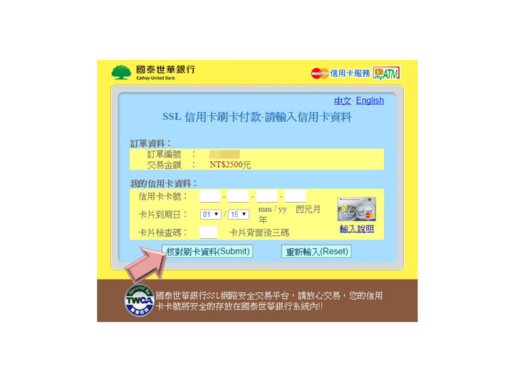 步驟10.轉至信用卡刷卡頁面