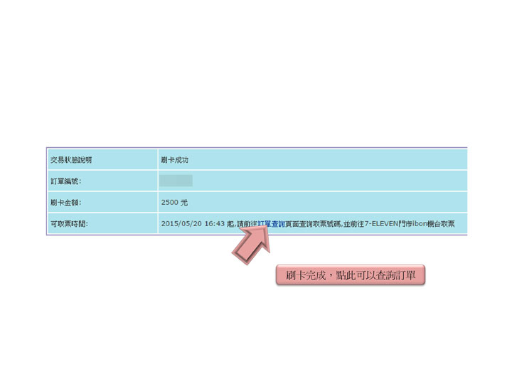 步驟13.刷卡成功即出示此畫面