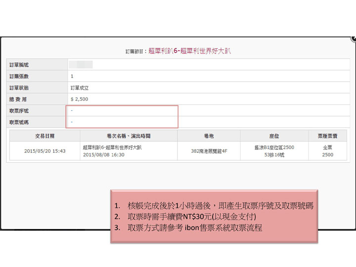 購/取票流程僅供參考,不代表實際購買情況