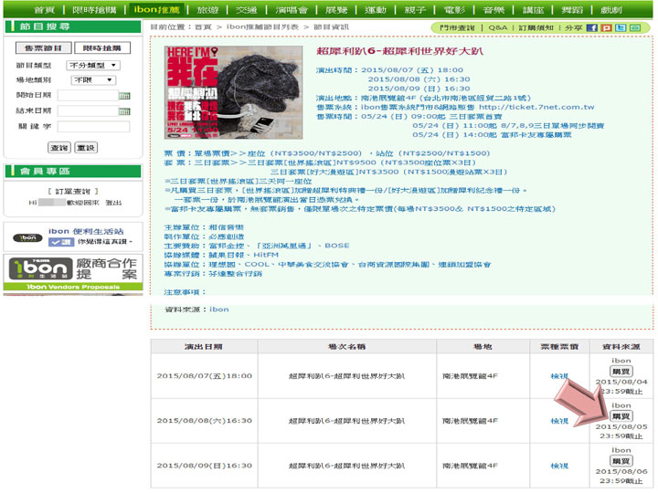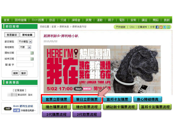 超犀利趴6-世界好大趴 ibon網站(套票/單日票)購票流程
