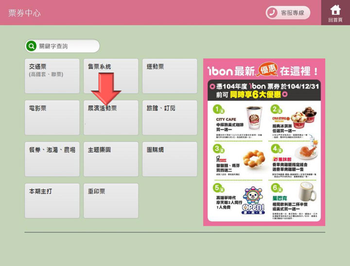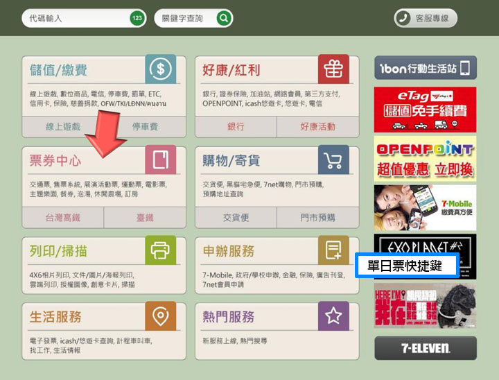 步驟1.點選【票券中心】/ 單日票請點選右側單日快捷鍵跳至步驟5