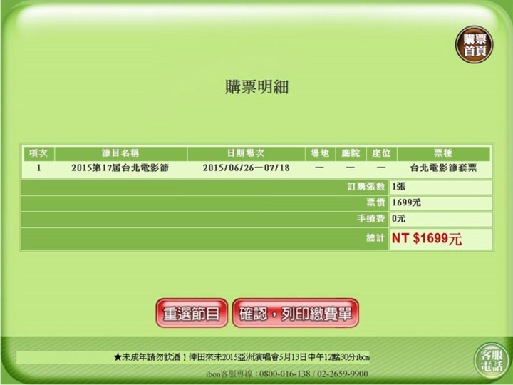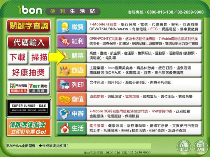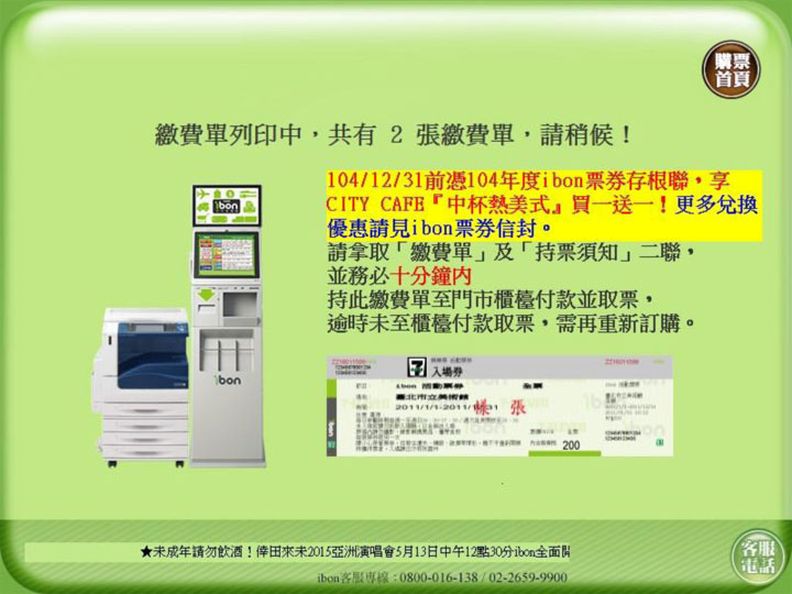 步驟8.列印繳費單並持取票單據至櫃檯領取ibon票券
