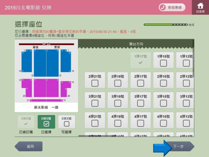 步驟21.重複步驟9.選擇電影場次