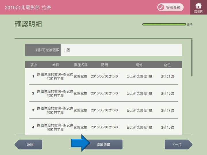 步驟19.確認購票明細並繼續選購