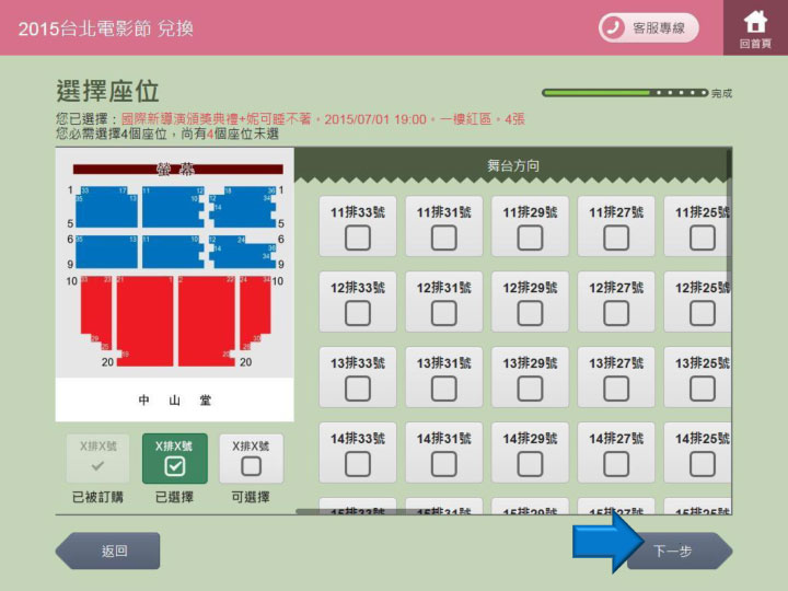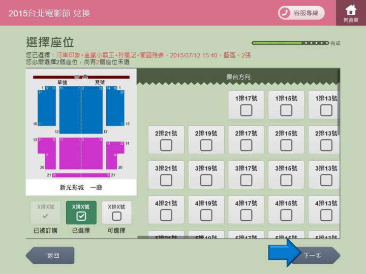 步驟18.重複步驟12.選擇座位