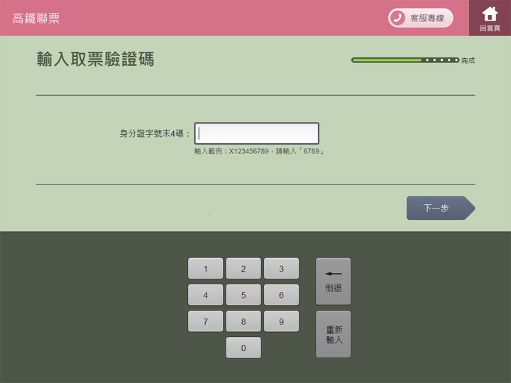 ※請記住輸入後四碼數字,於高鐵票劃位時驗證使用