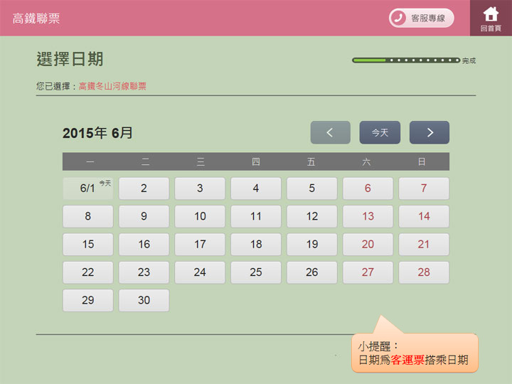 例:客運乘車日:6/2 高鐵使用期間:6/1~6/4