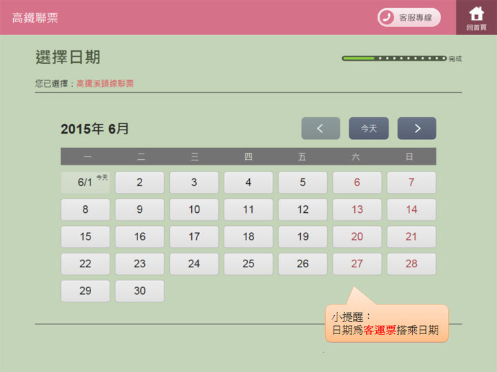 例:溪頭線乘車日:6/2 高鐵使用期間:6/1~6/4