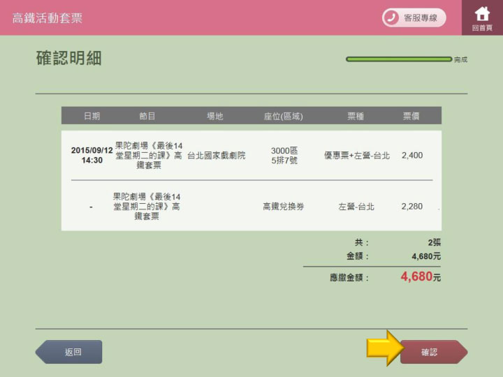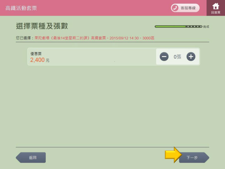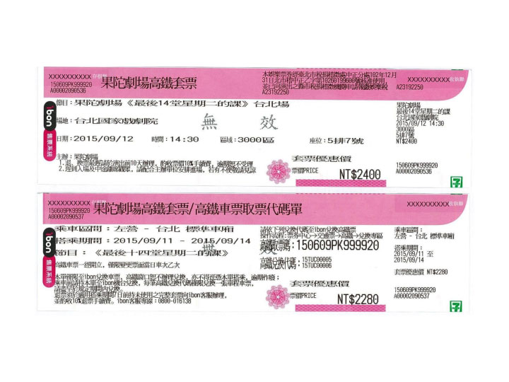 果陀劇場-最後14堂課星期二的課高鐵套票 購買流程