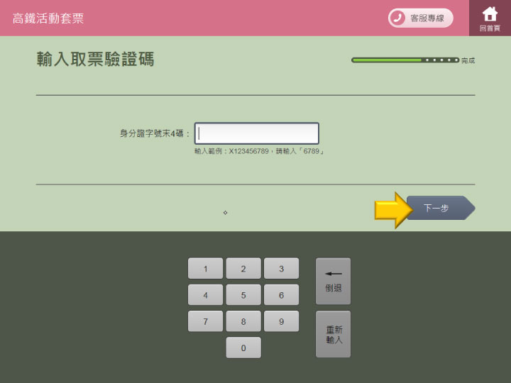 步驟13.請輸入取票驗證碼(身份證後四碼/非本國國籍請輸入護照後四碼)