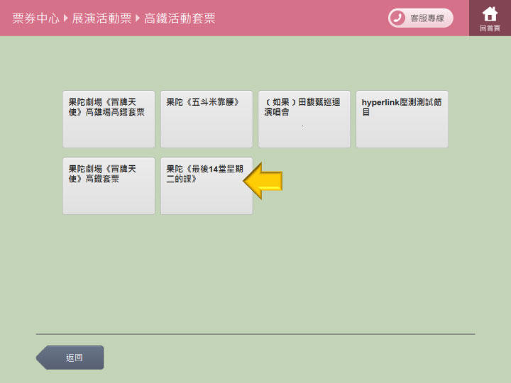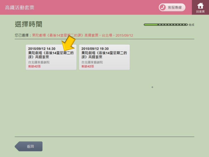步驟4.點選 果陀《最後14堂課星期二的課》高鐵套票
