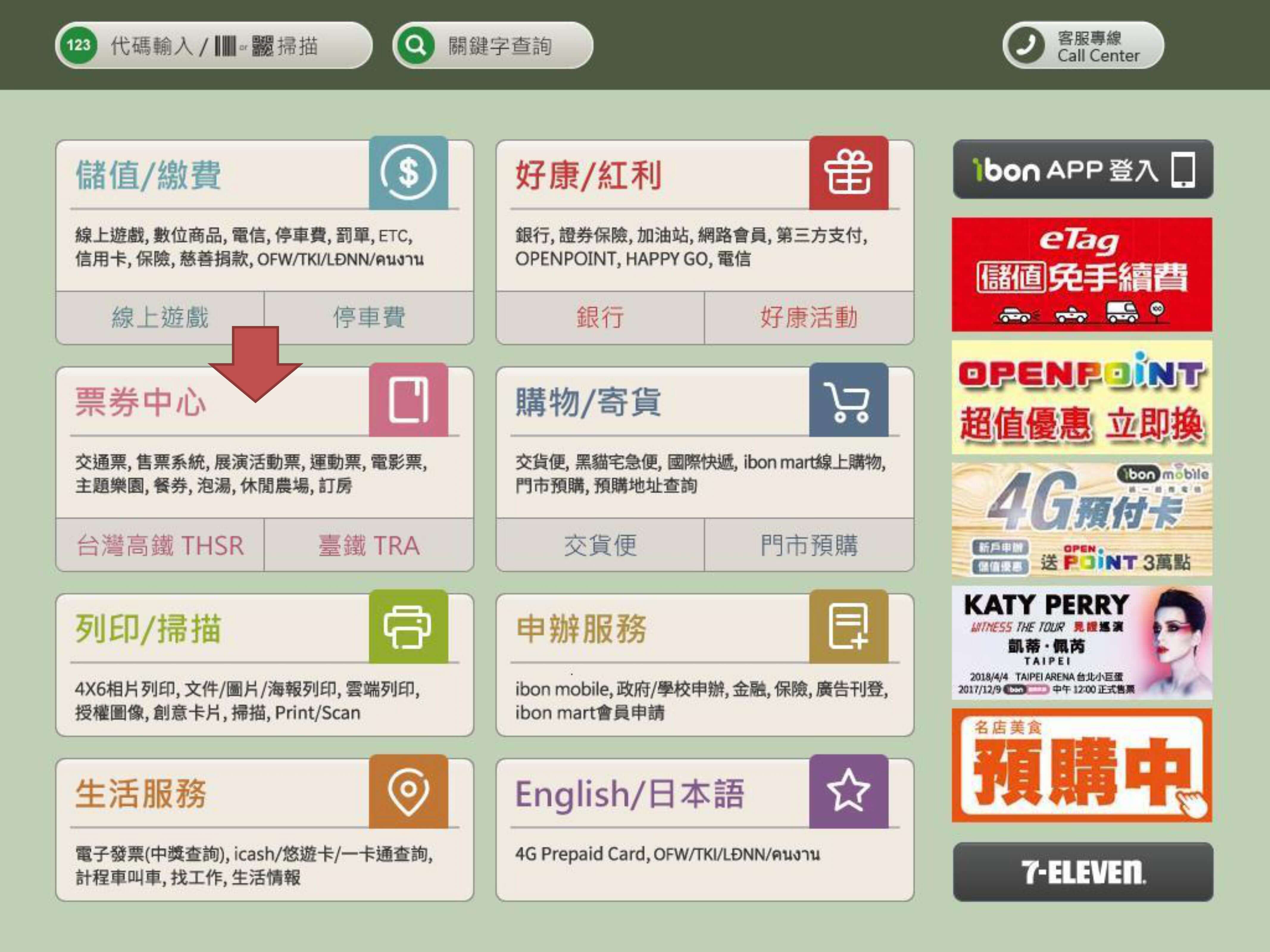 Step 1.Click【票券中心】
