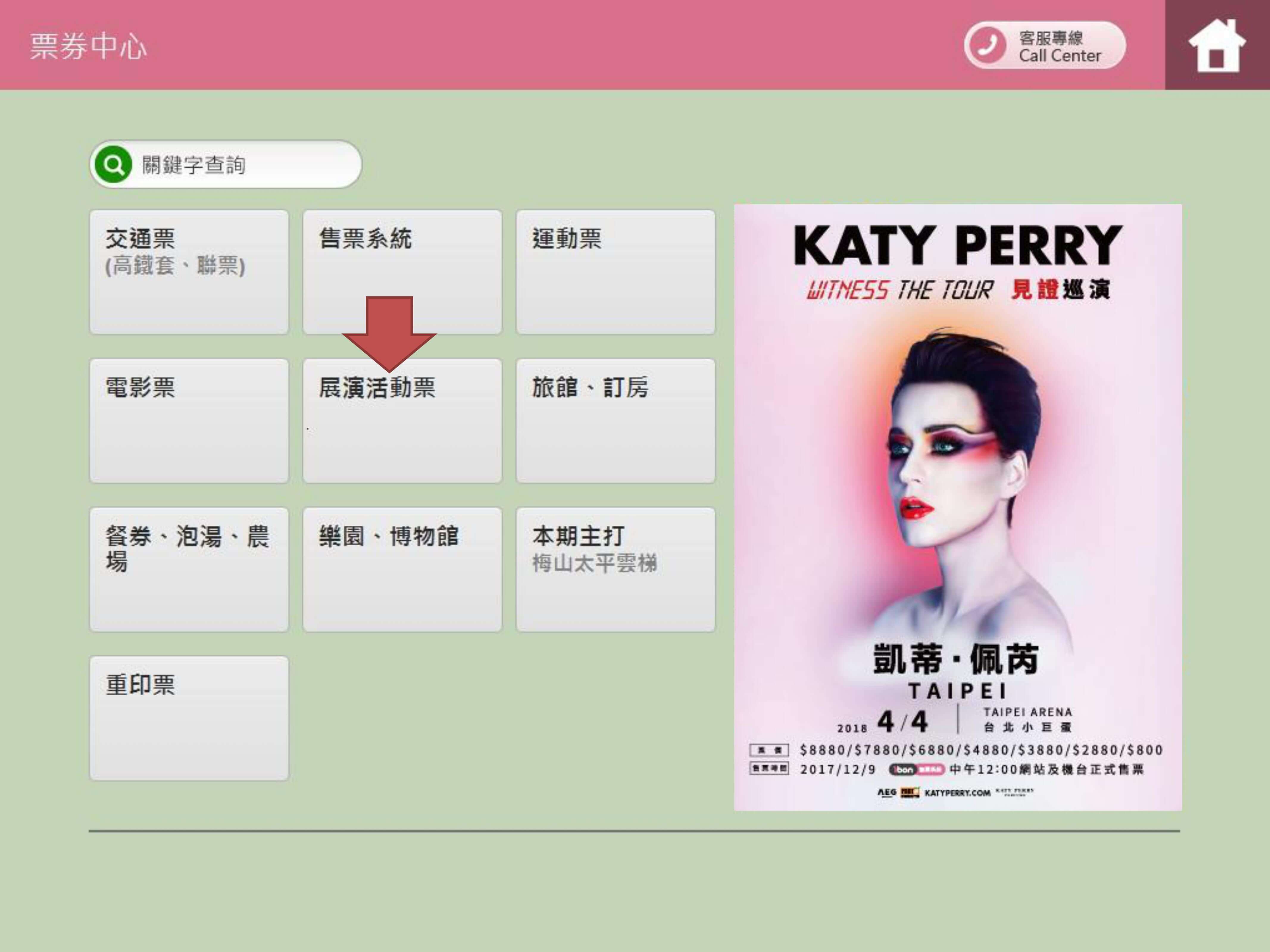 步驟4.點選【凱蒂佩芮 見證巡演2018台北站】