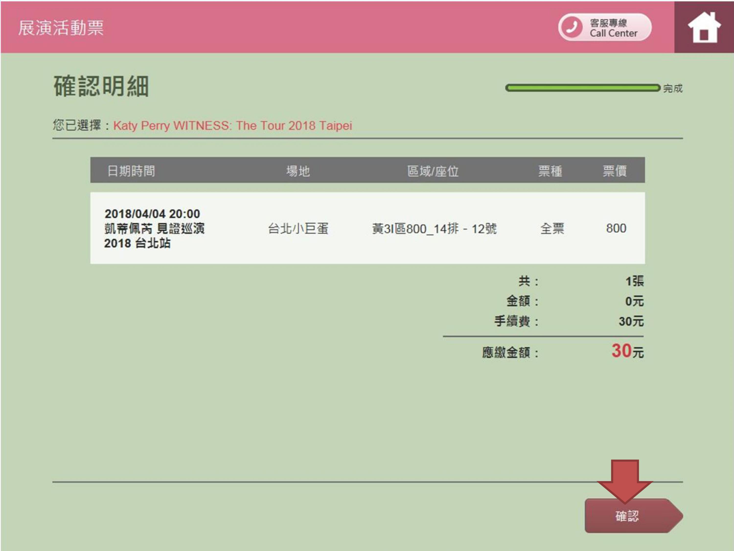 Step 4.Click【凱蒂佩芮 見證巡演2018台北站】