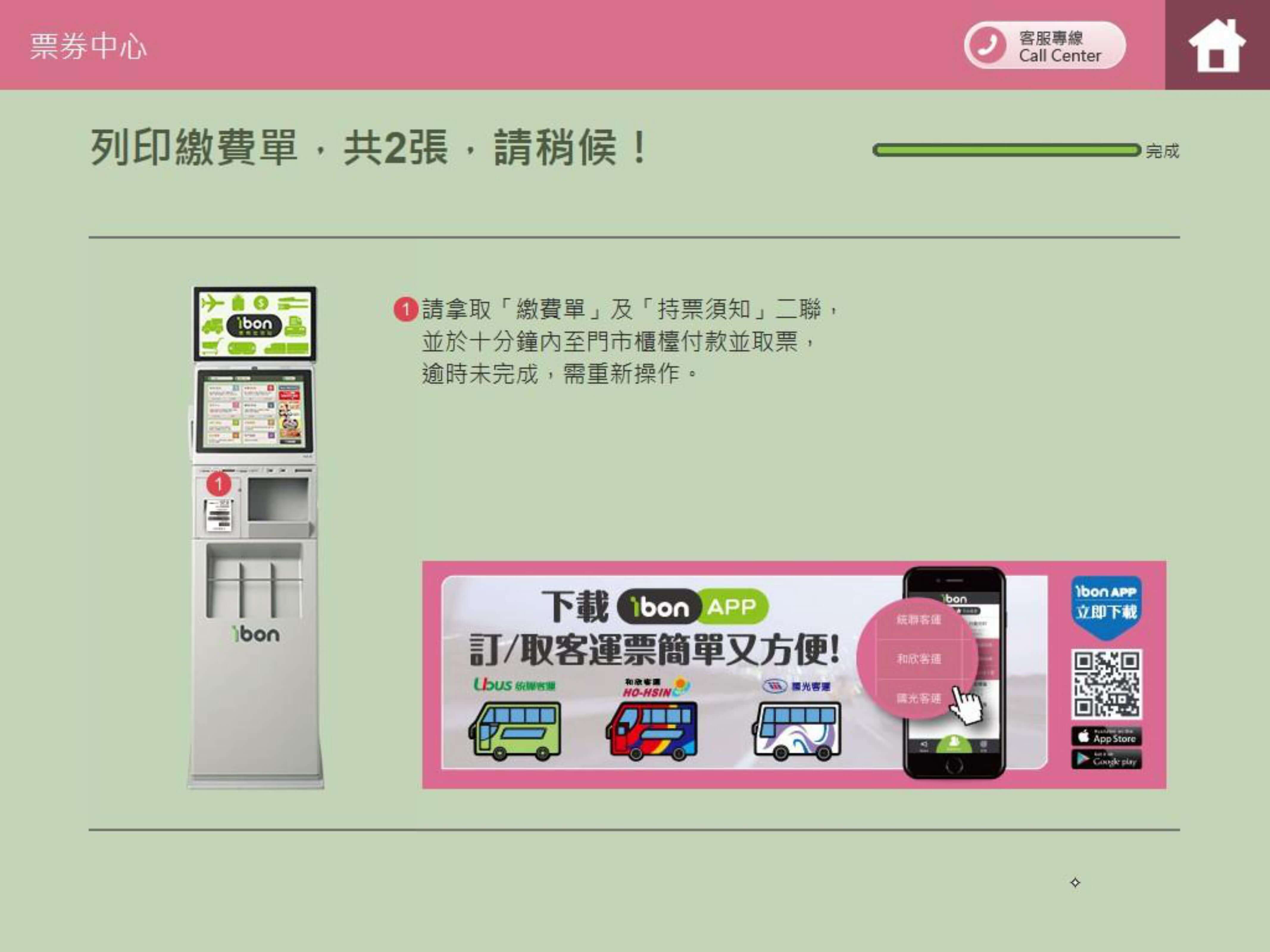 步驟8.列印繳費單並持取票單據至櫃檯領取ibon票券