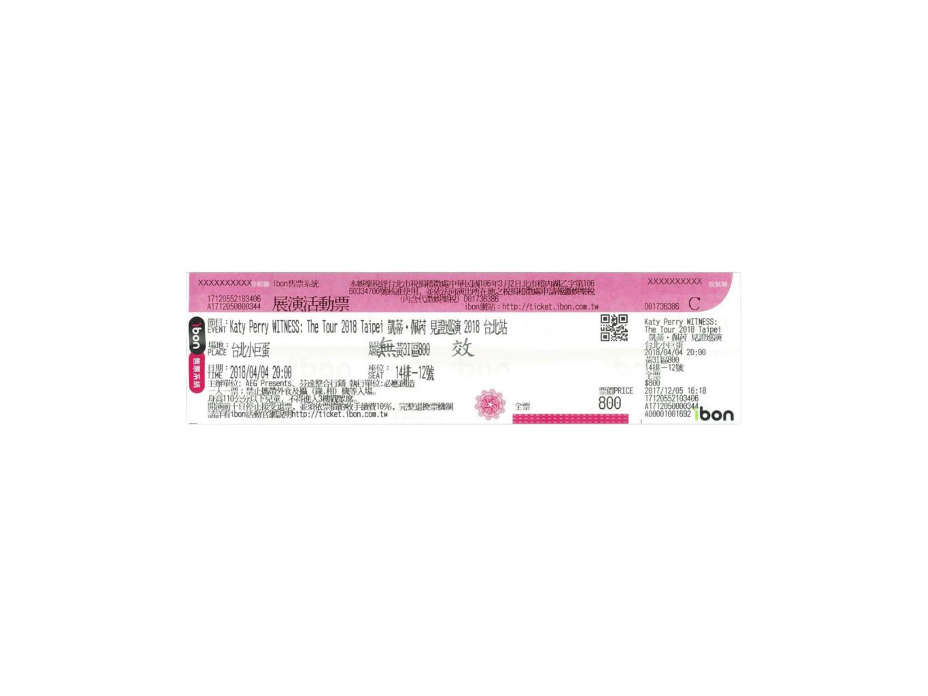【Katy Perry WITNESS: The Tour 2018 Taipei凱蒂˙佩芮 見證巡演 2018 台北站】ibon 取票流程