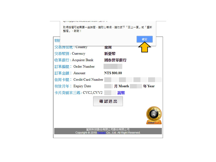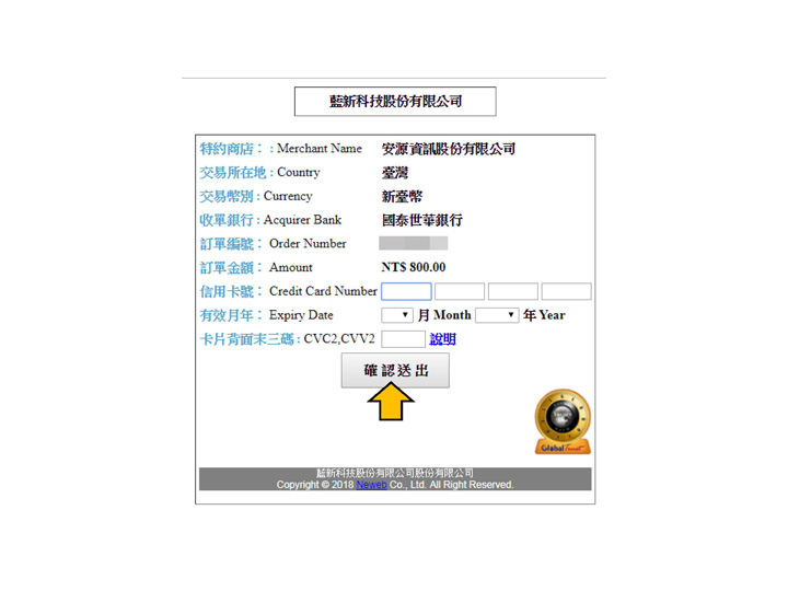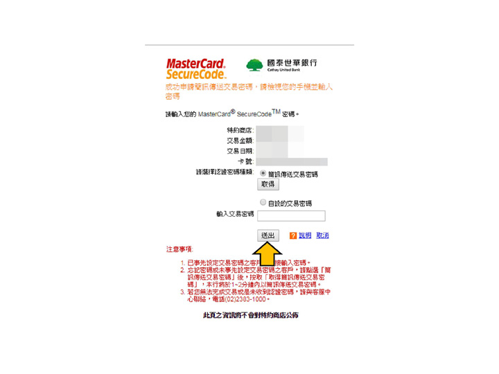 步驟10.若信用卡為3D驗證,則出現驗證頁面
