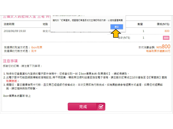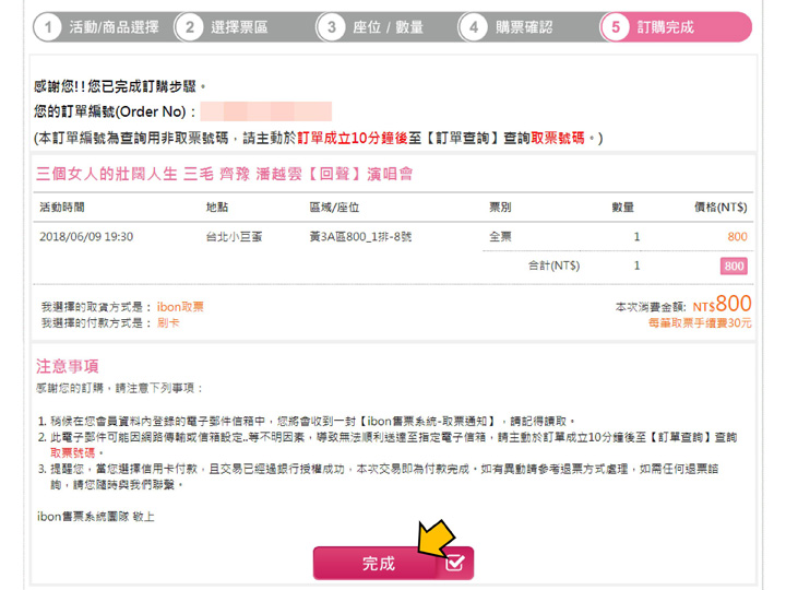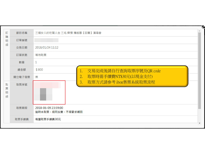步驟14.取得「取票序號」及「QR code」至ibon機台取票
