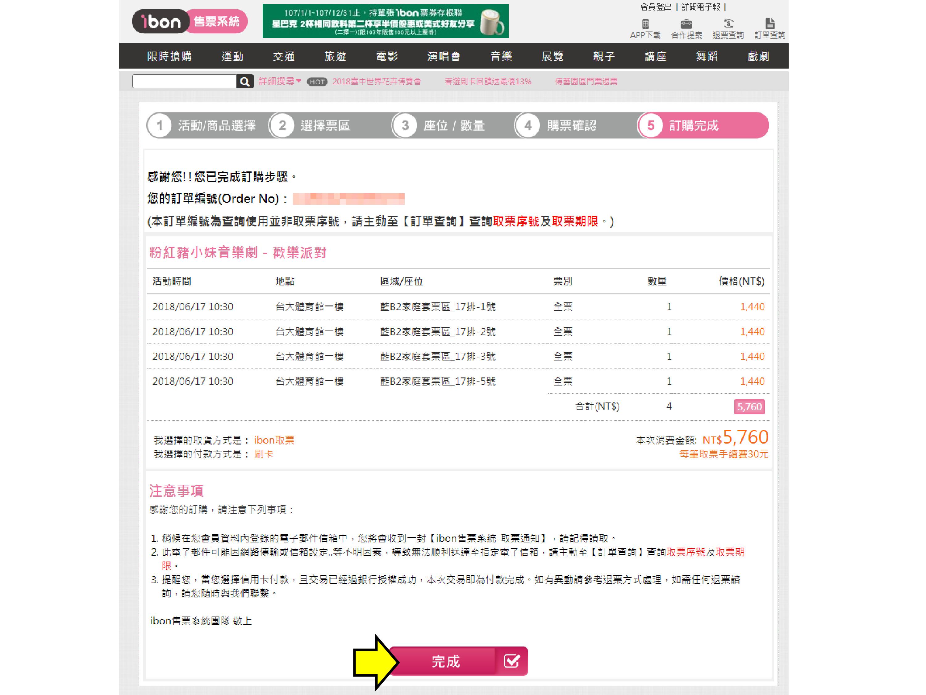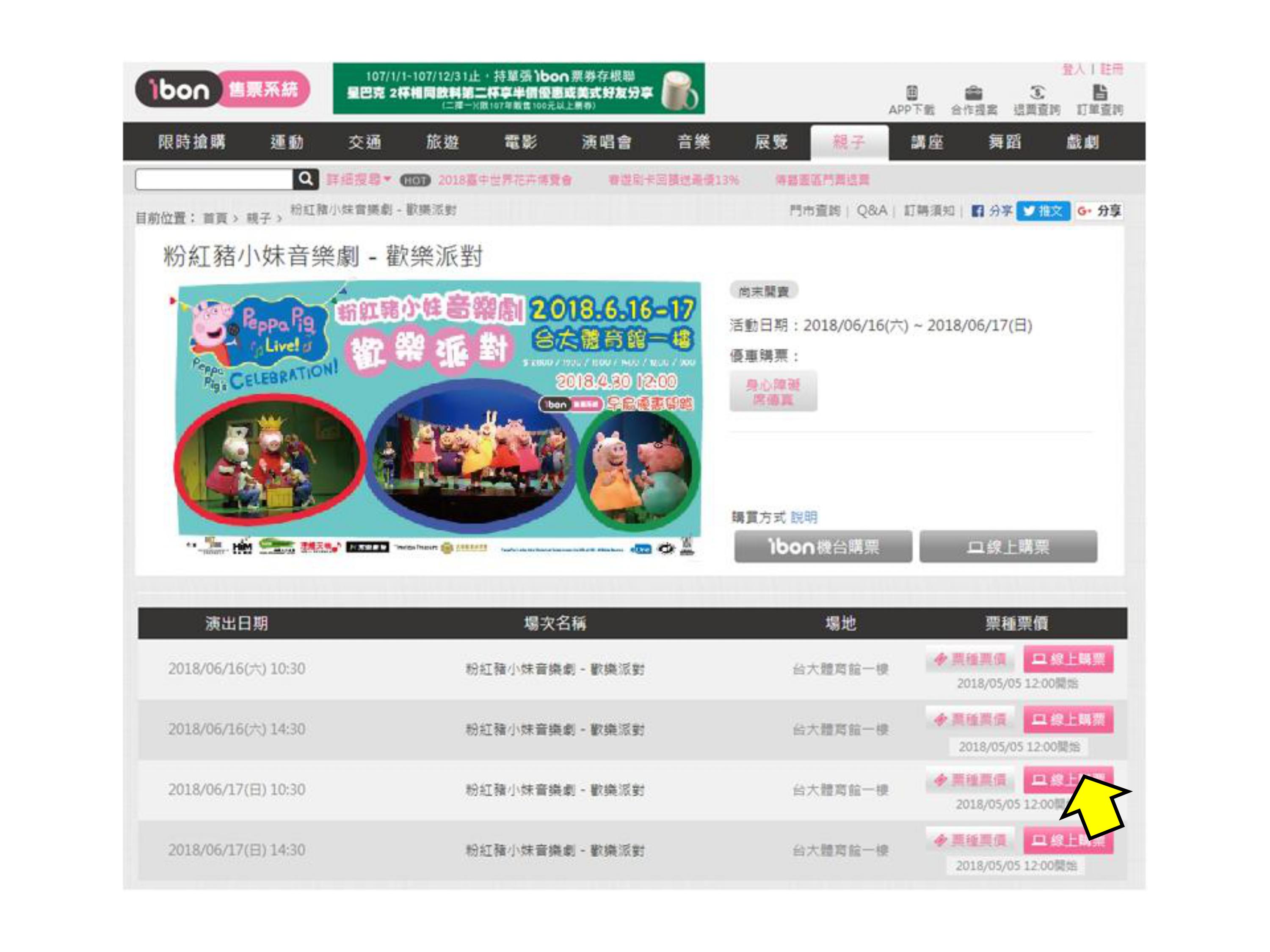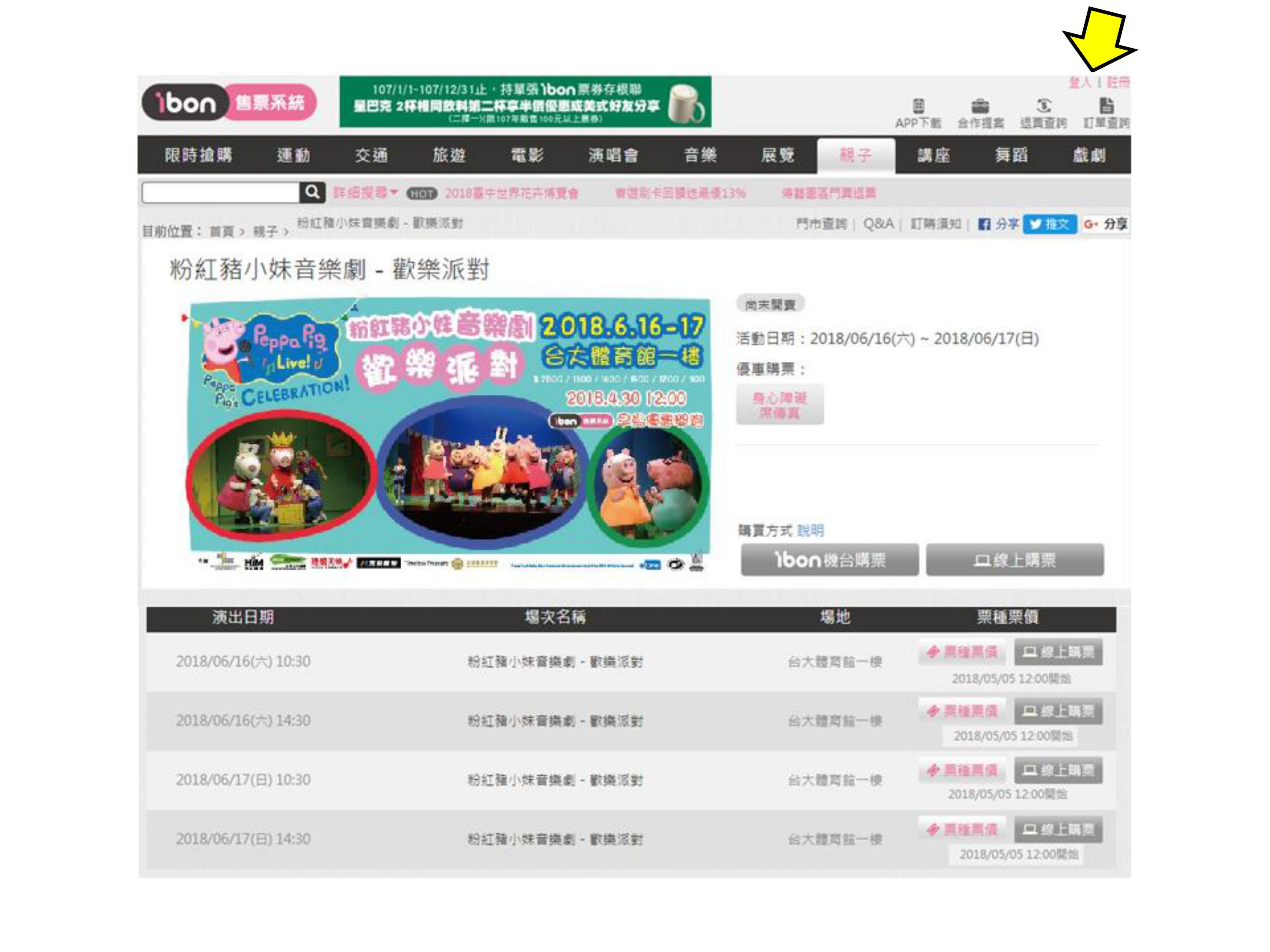 【粉紅豬小妹音樂劇-歡樂派對 】ibon 網站購票流程