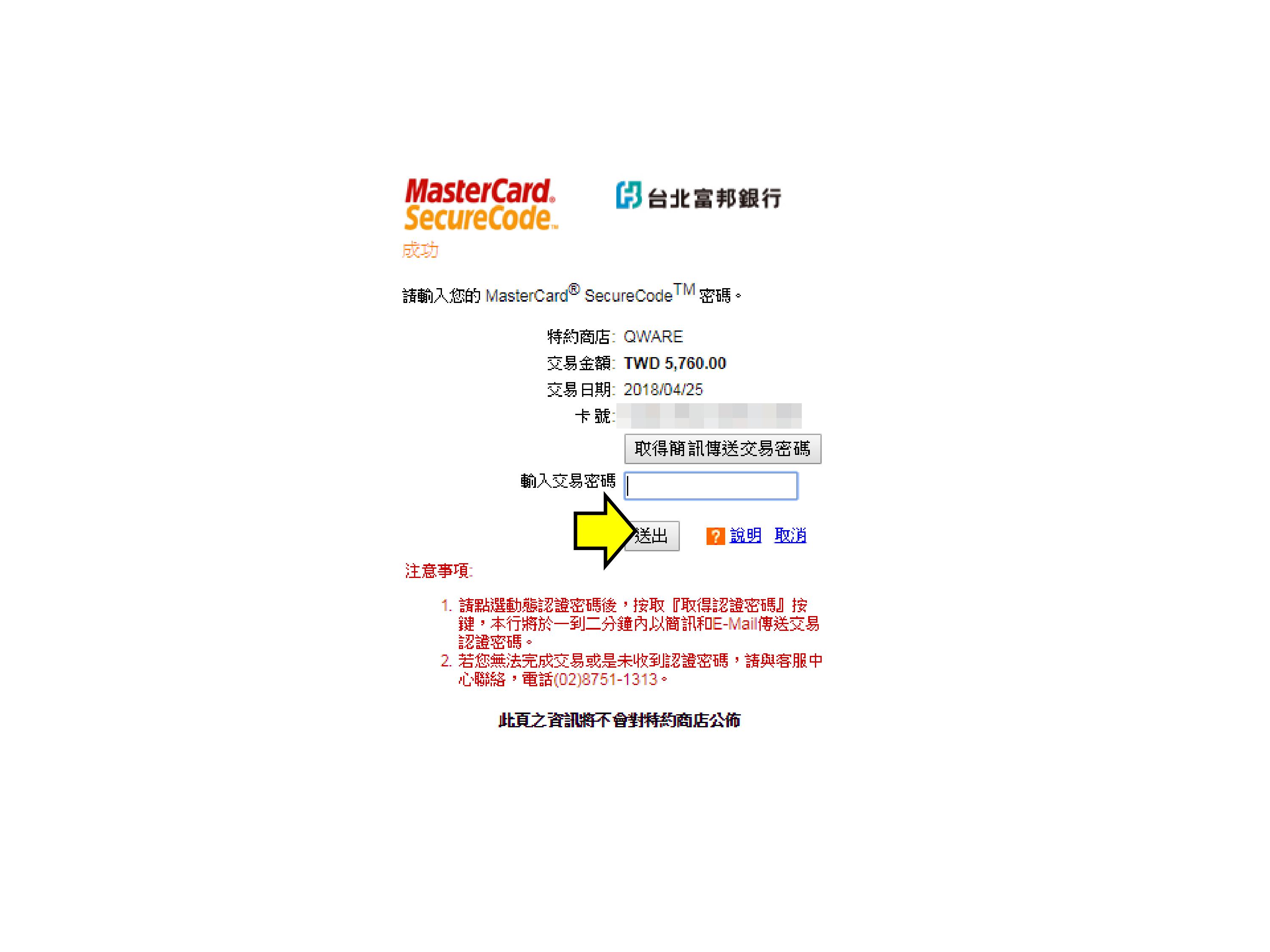 步驟9.若信用卡為3D驗證,則出現驗證頁面