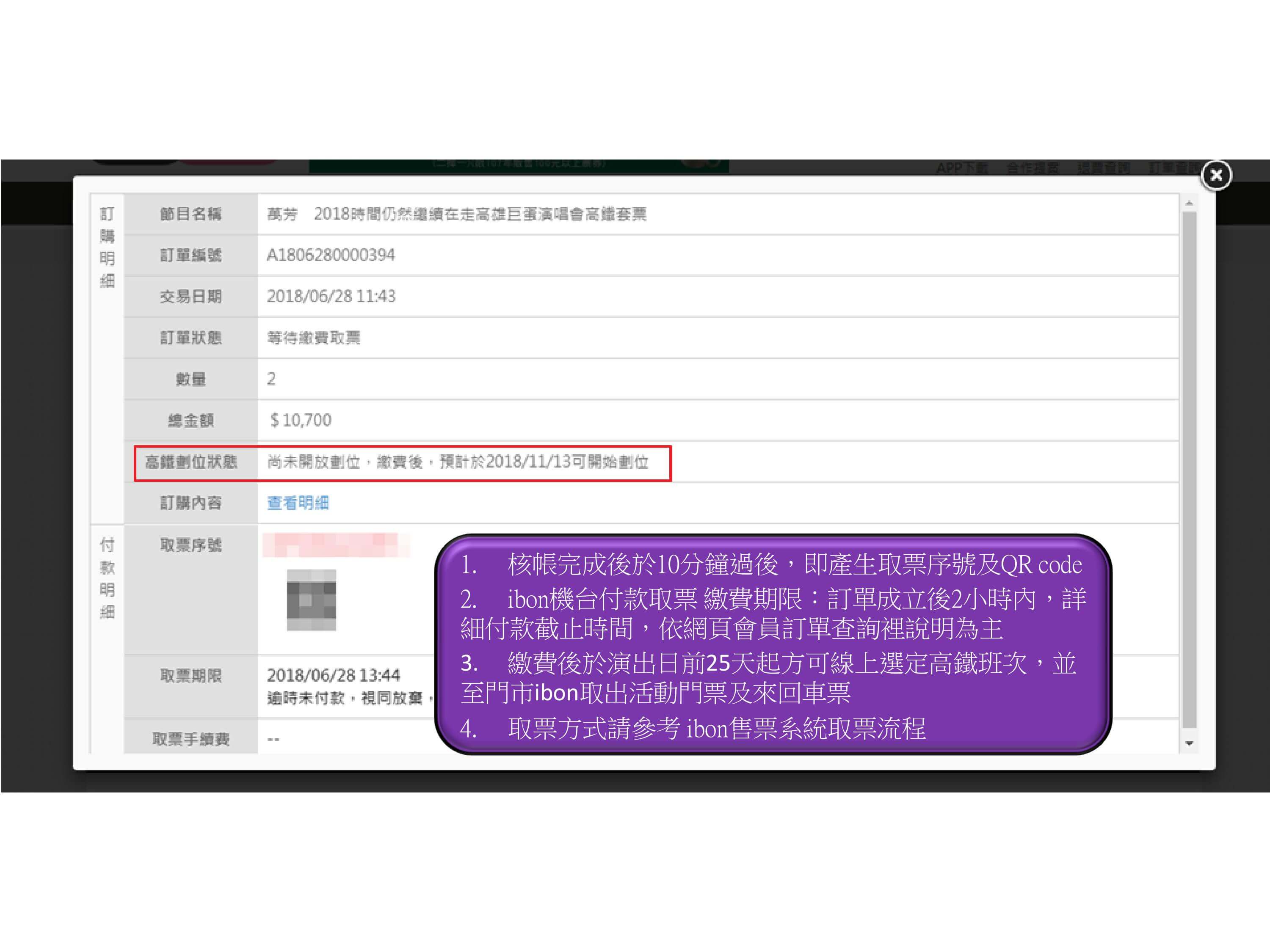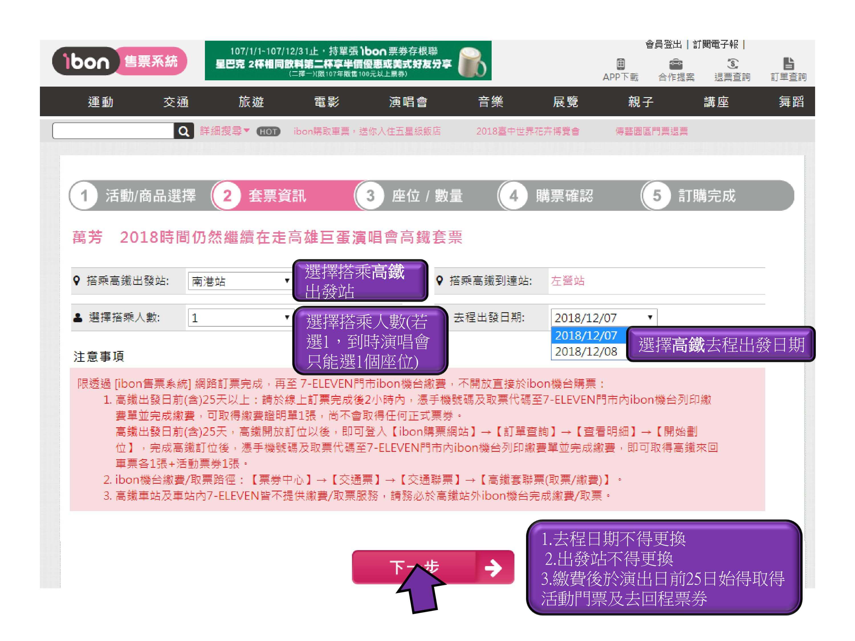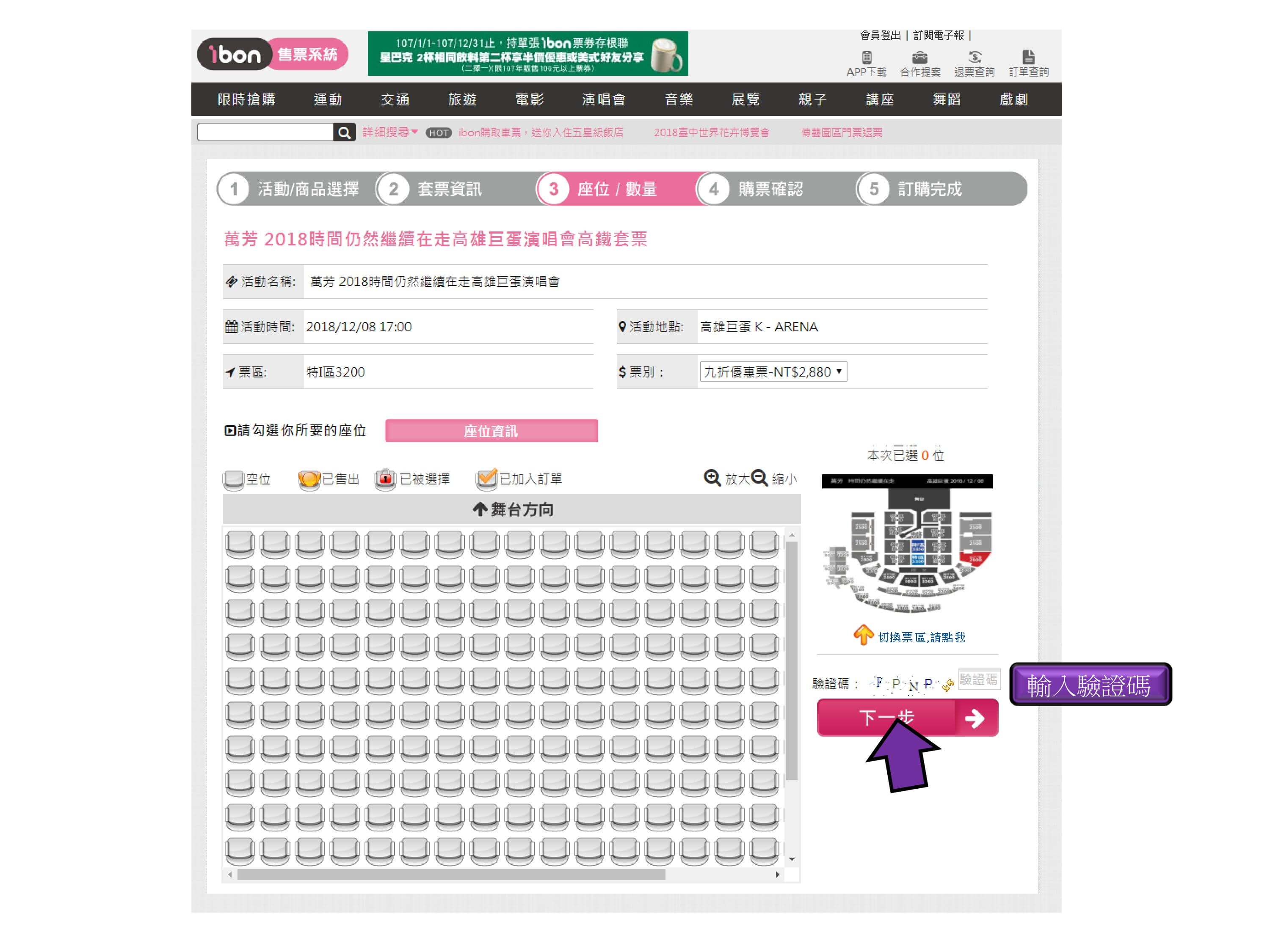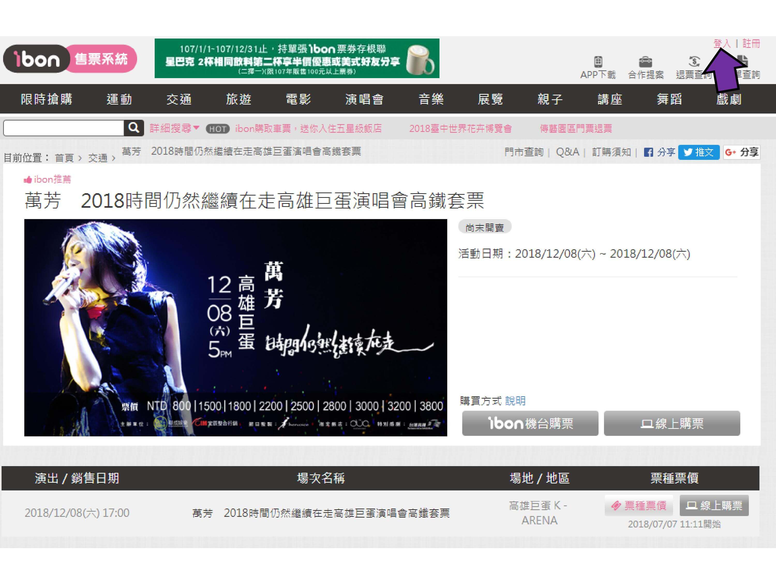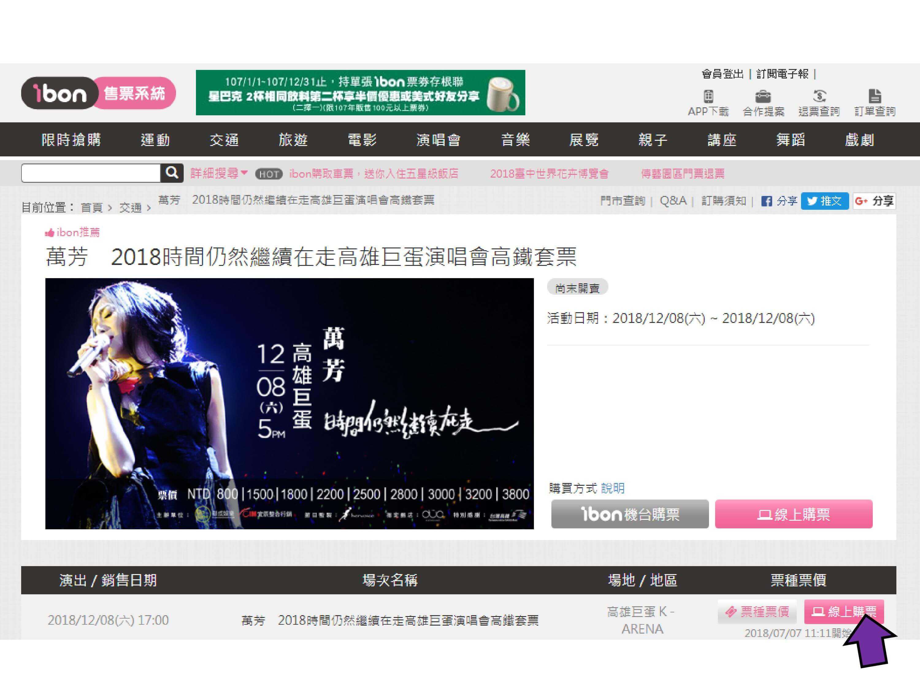 【萬芳 2018時間仍然繼續在走高雄巨蛋演唱會高鐵套票】ibon 網站購票流程