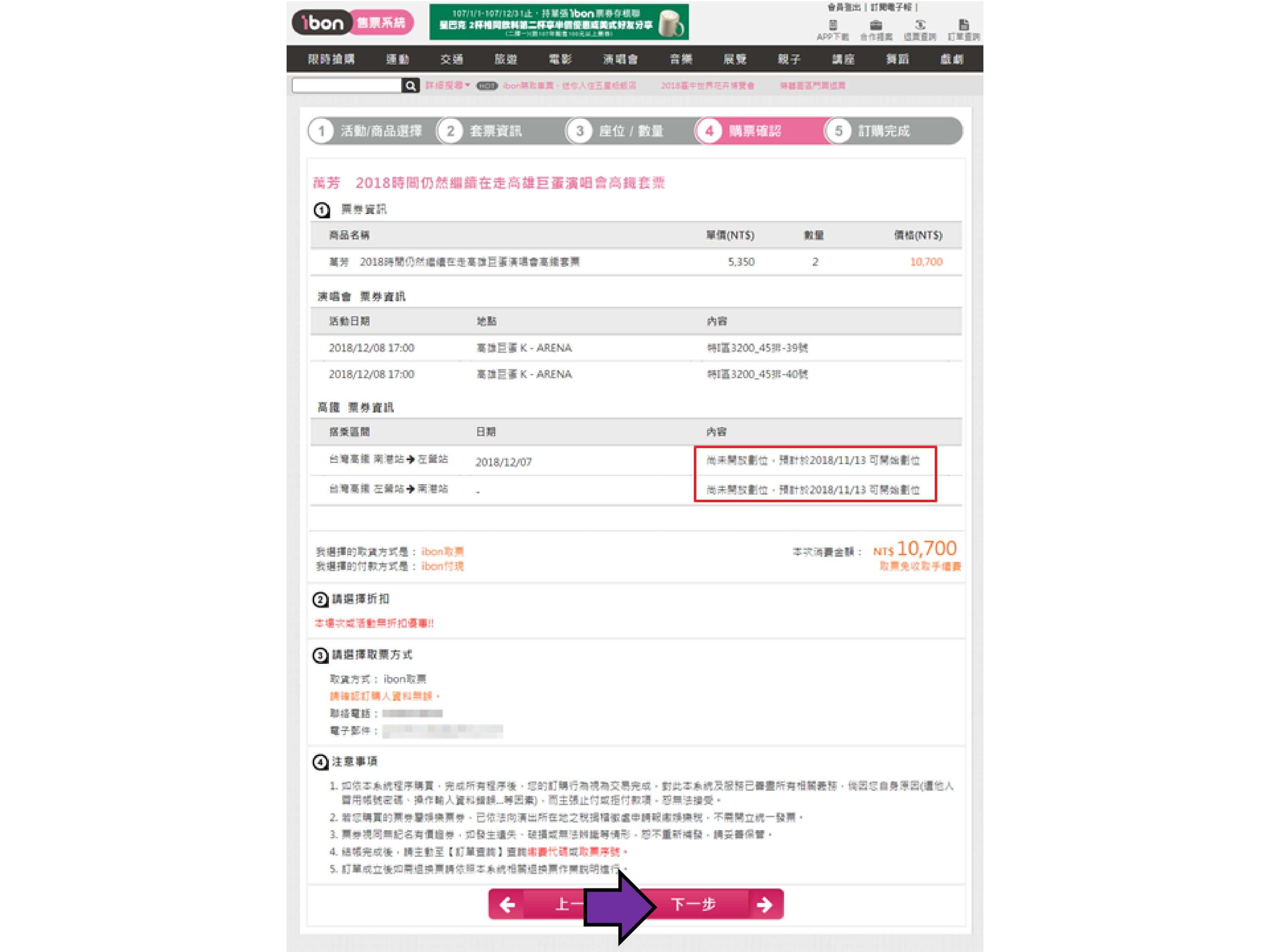 步驟8.確認票券資訊以及取票方式,點選下一步