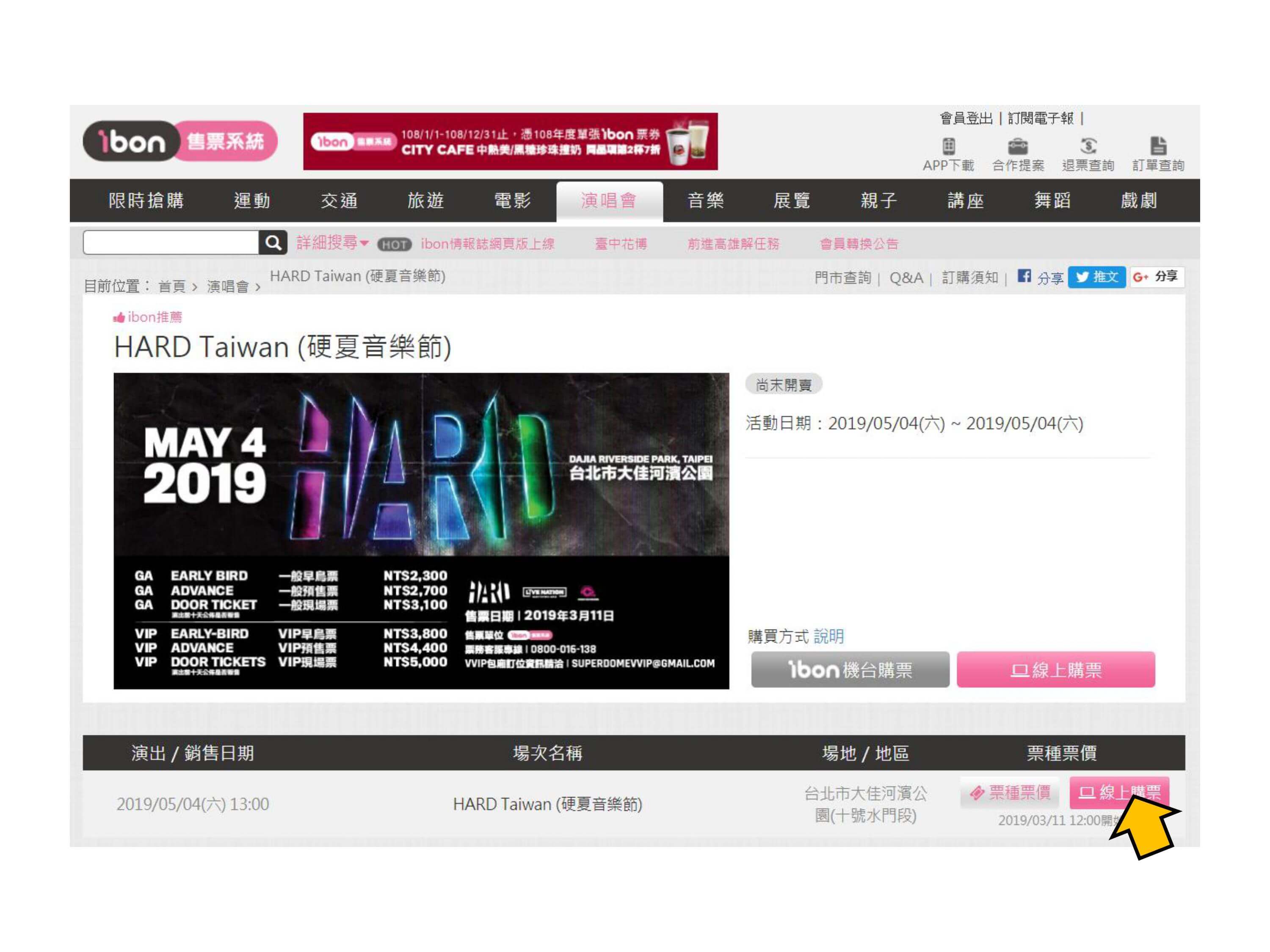 【HARD Taiwan﹝硬夏音樂節﹞】ibon 網站購票流程