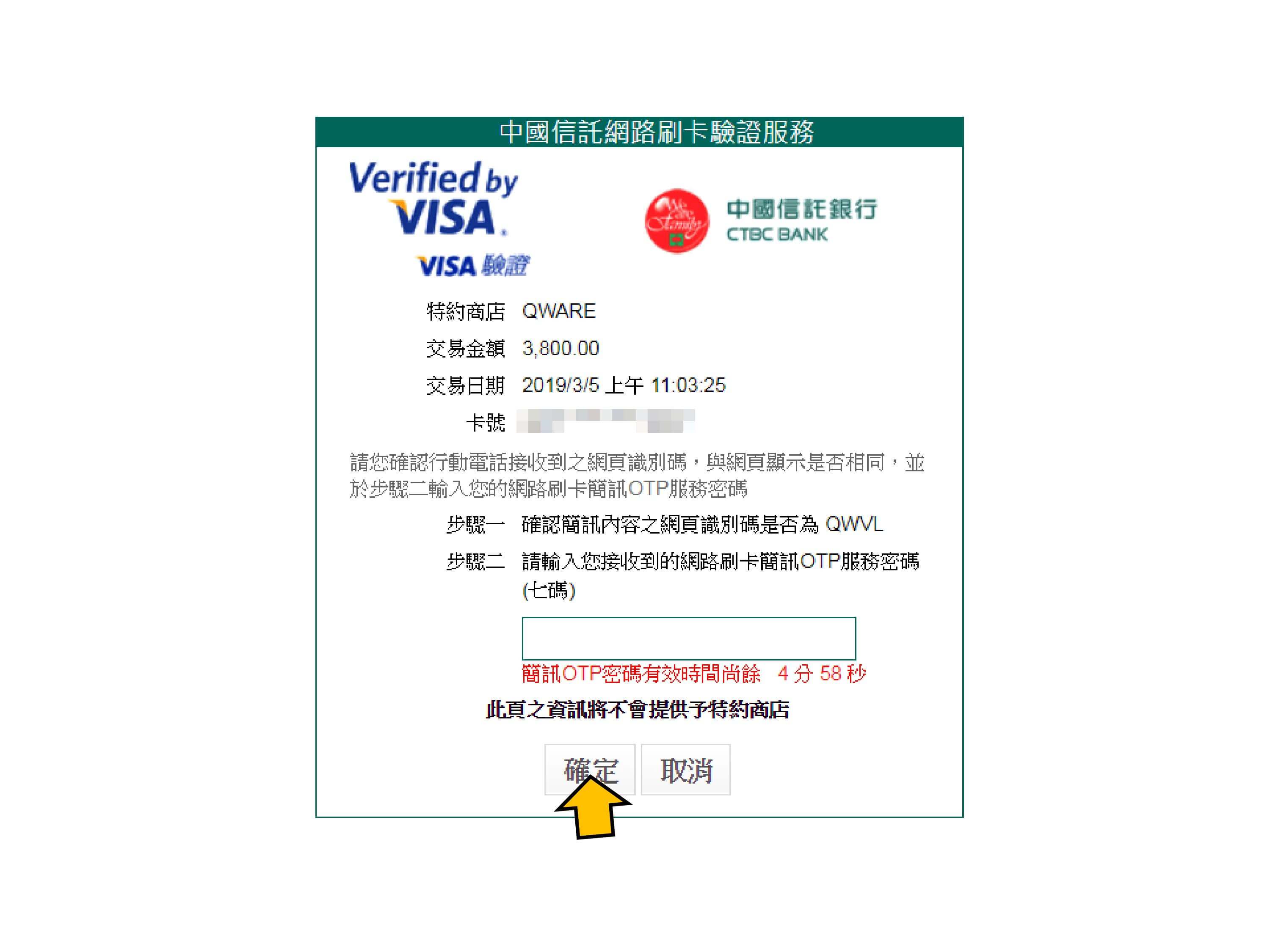 步驟9.若信用卡為3D驗證,則出現驗證頁面