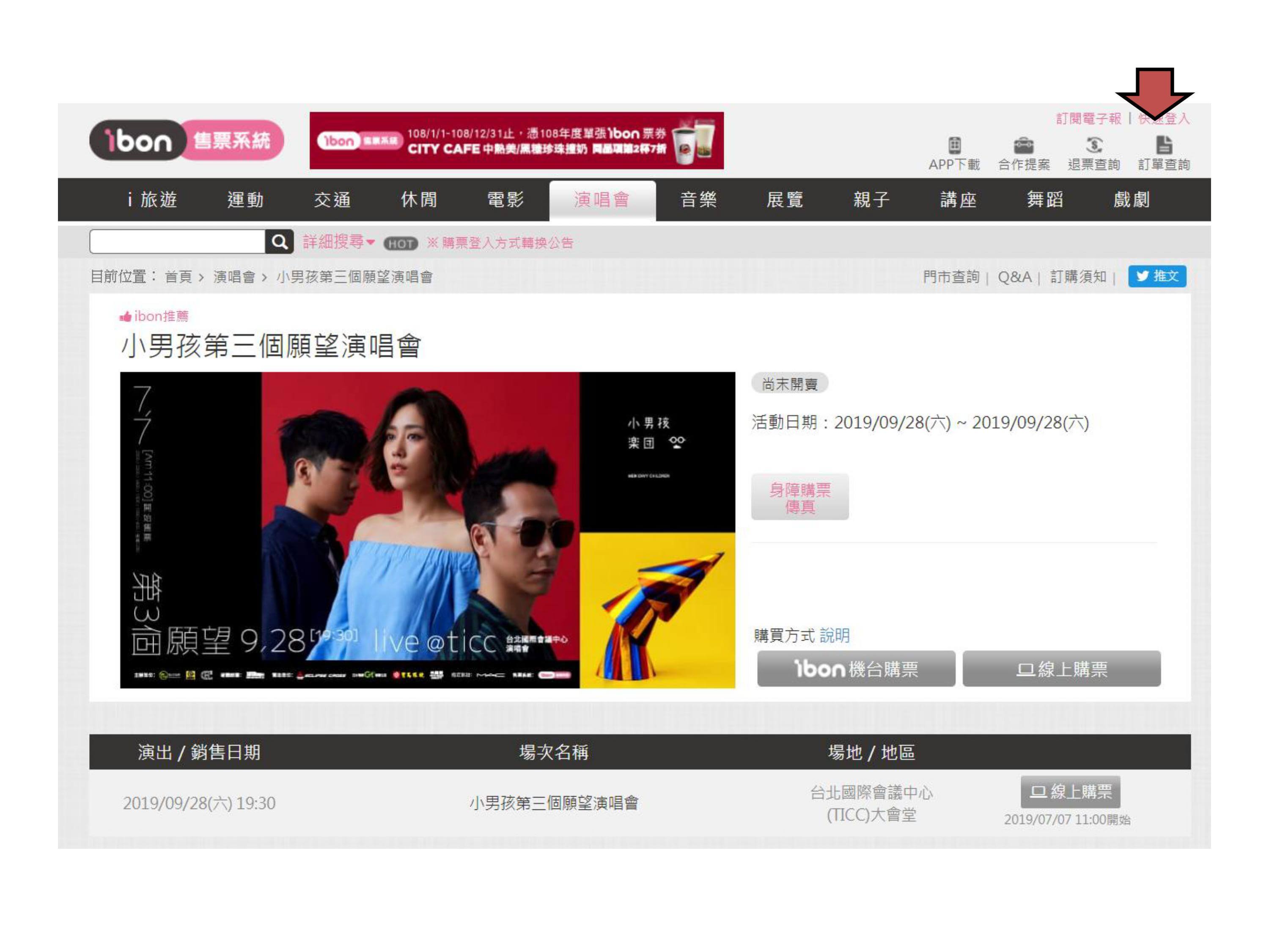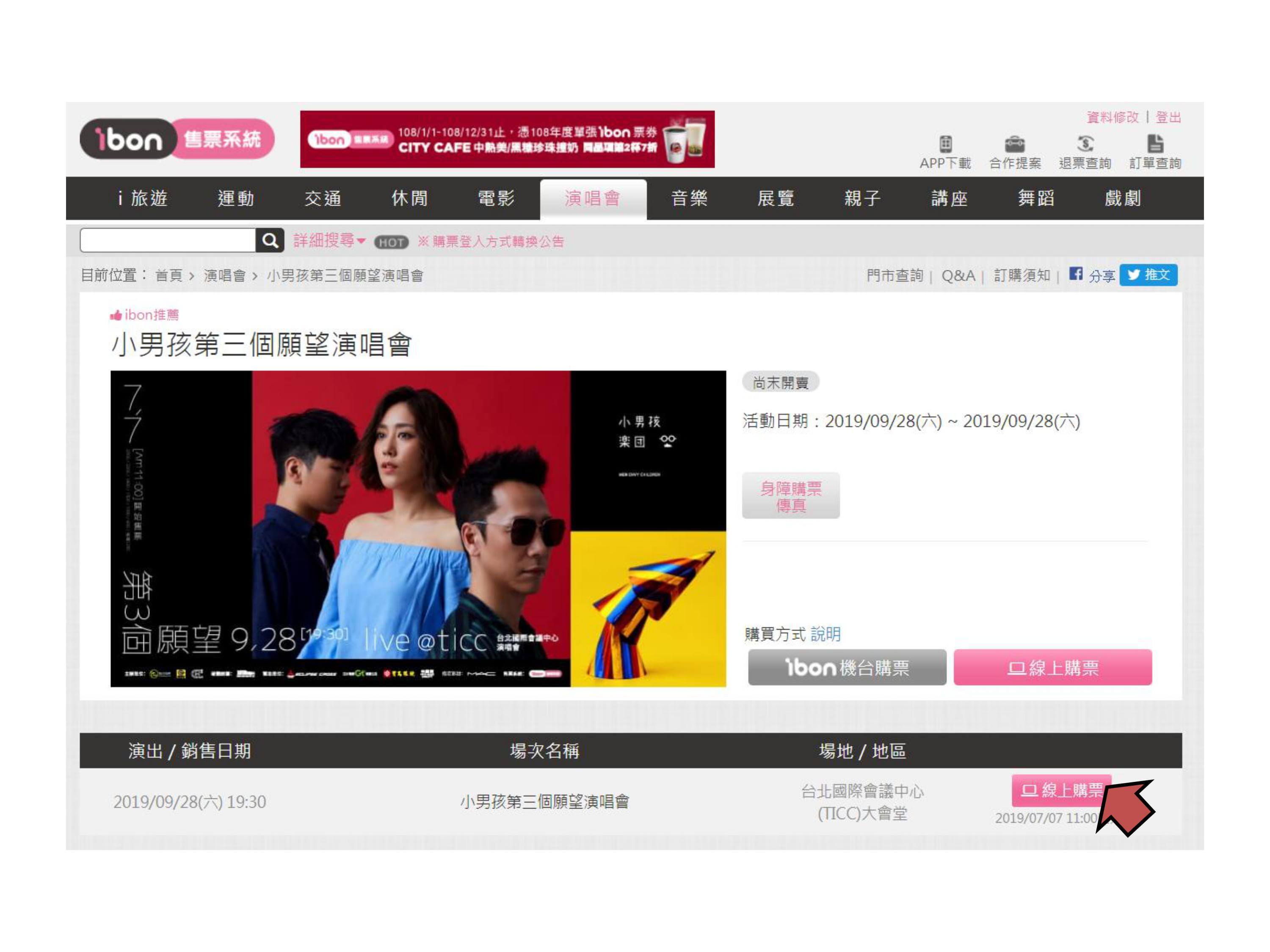 【小男孩第三個願望演唱會】ibon 網站購票流程