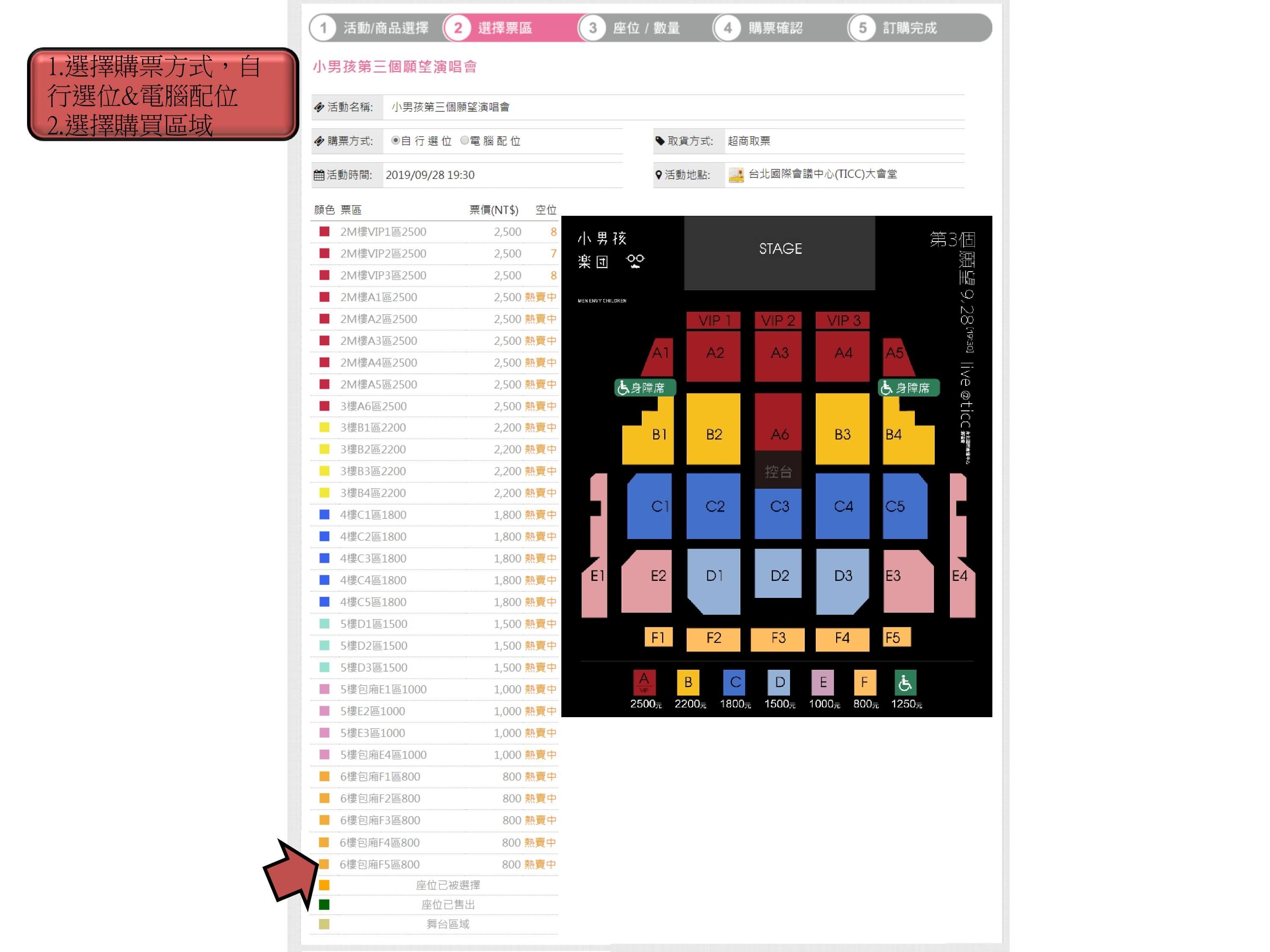 步驟4.點選【購票方式和座位區域】
