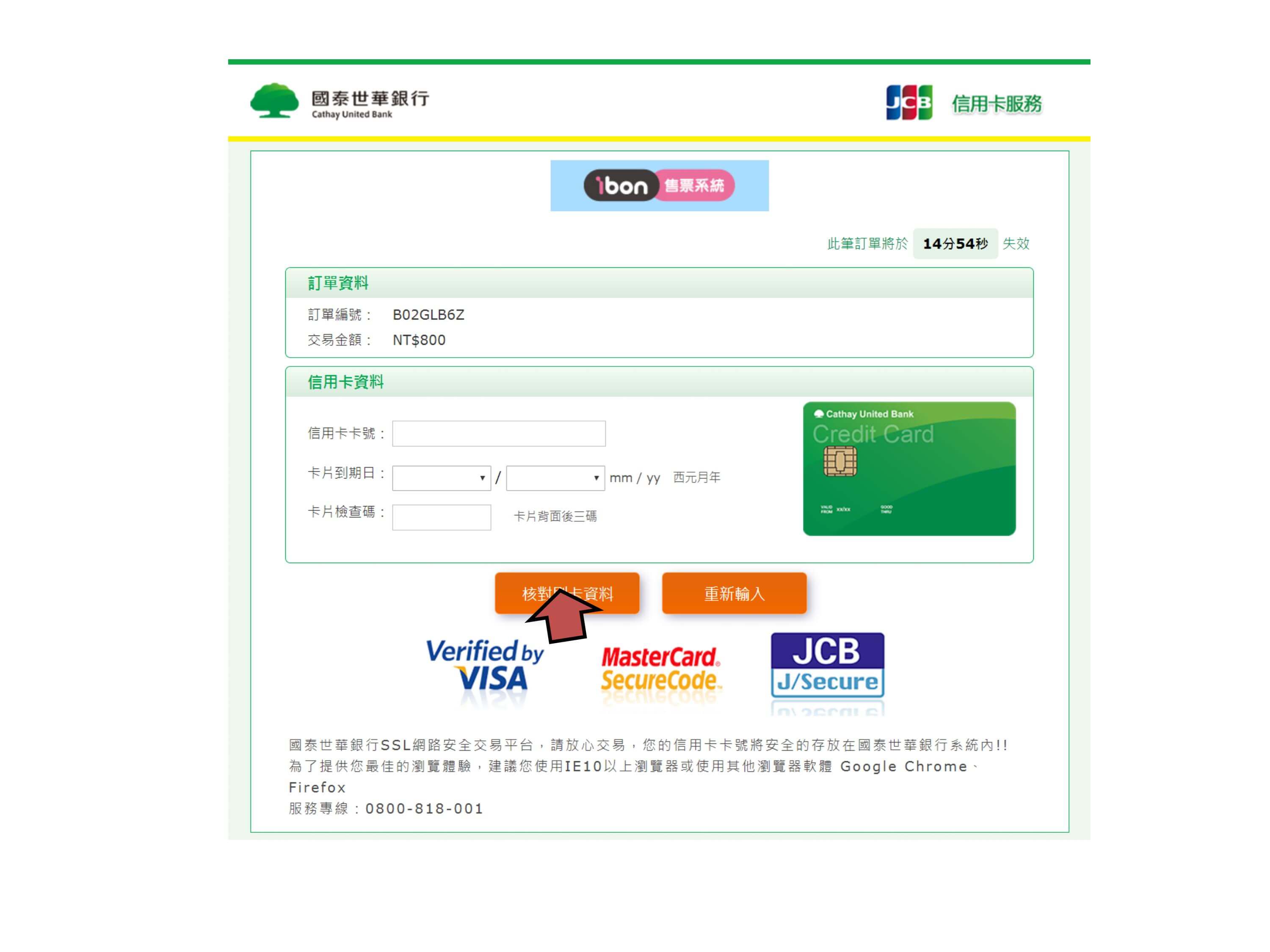 步驟7.確認票種張數、付款方式,點選結帳