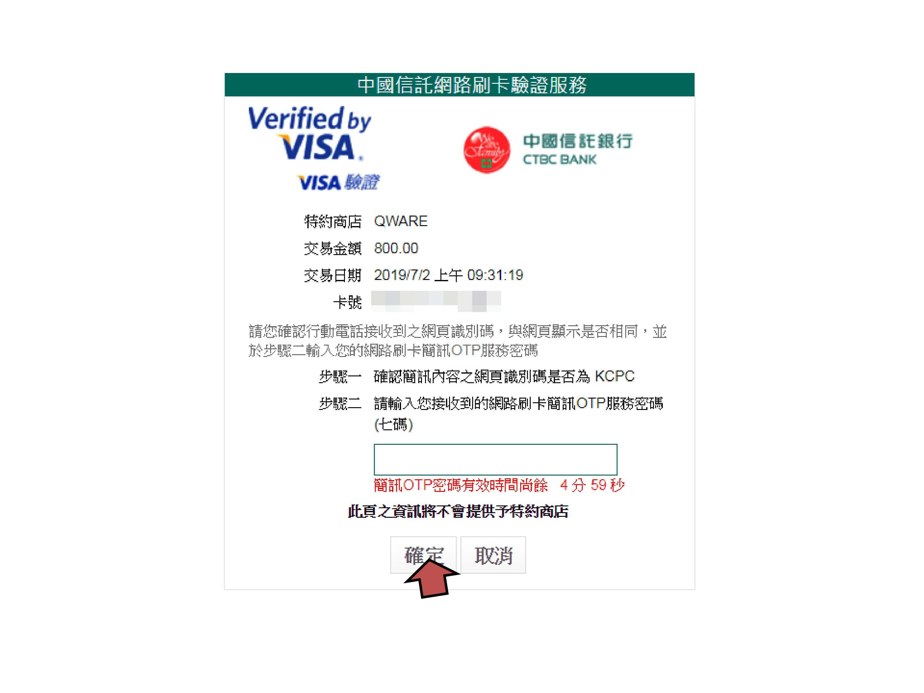 步驟9.若信用卡為3D驗證,則出現驗證頁面