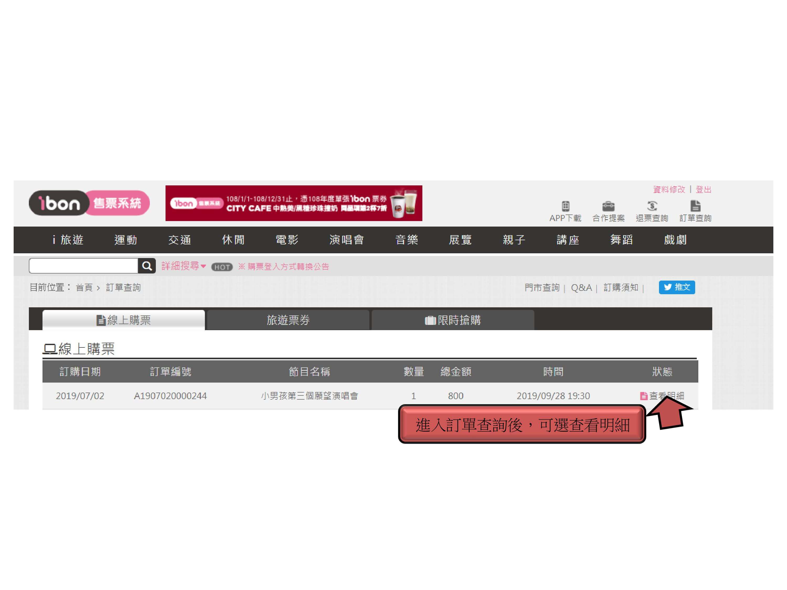 步驟12.回到訂單查詢點選「查看明細」