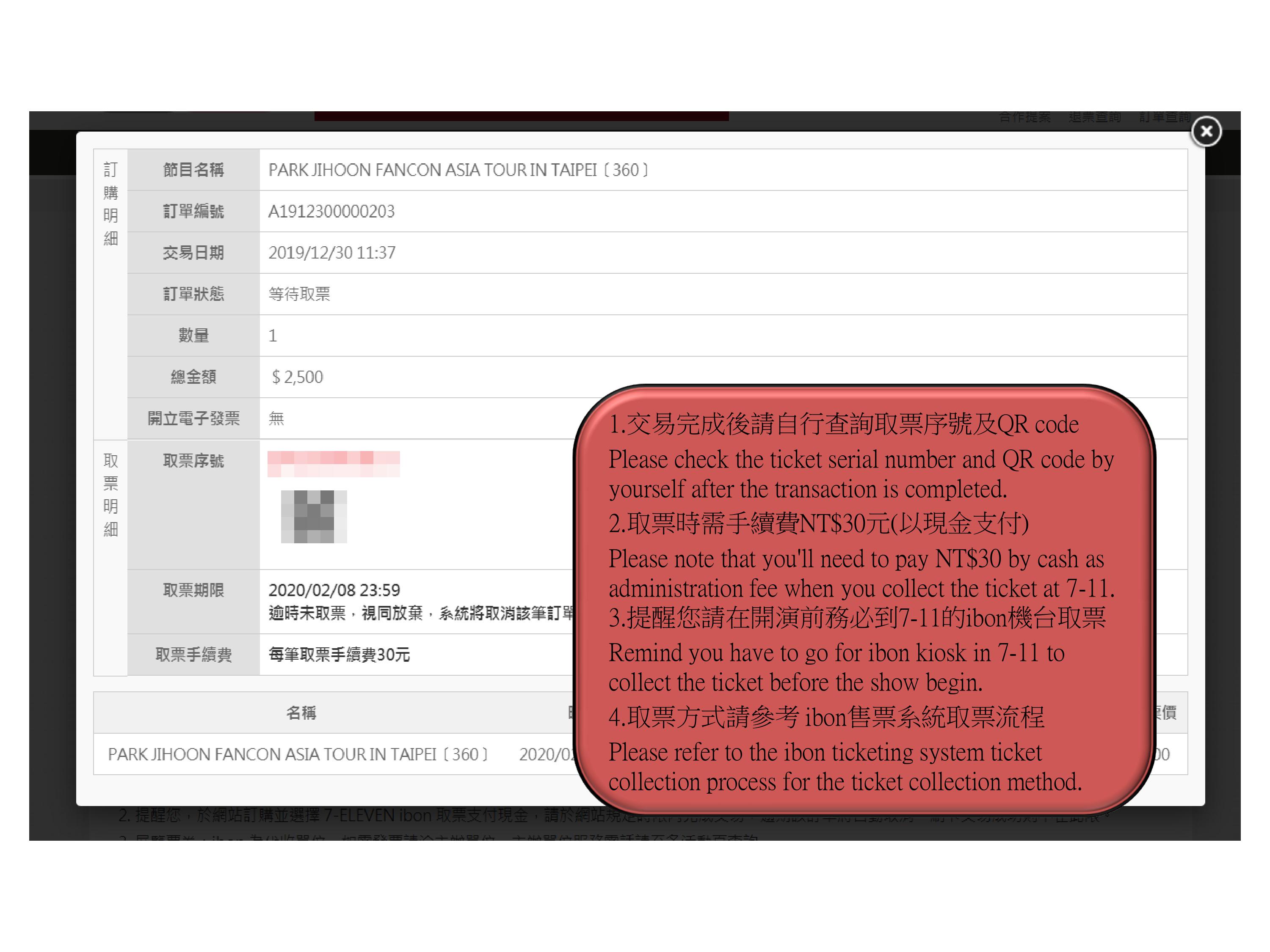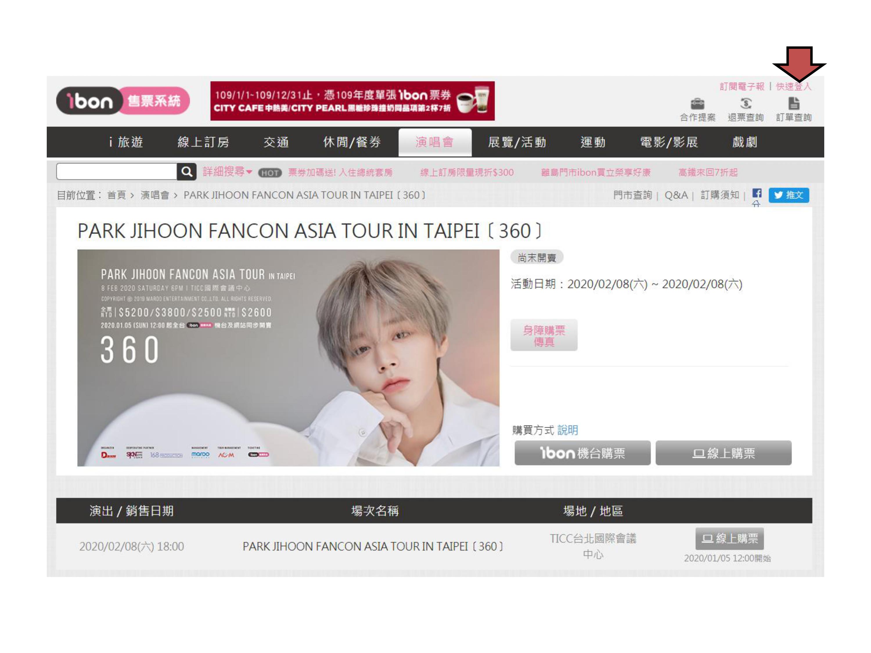 【PARK JIHOON FANCON ASIA TOUR IN TAIPEI〔360〕】ibon 網站購票流程
