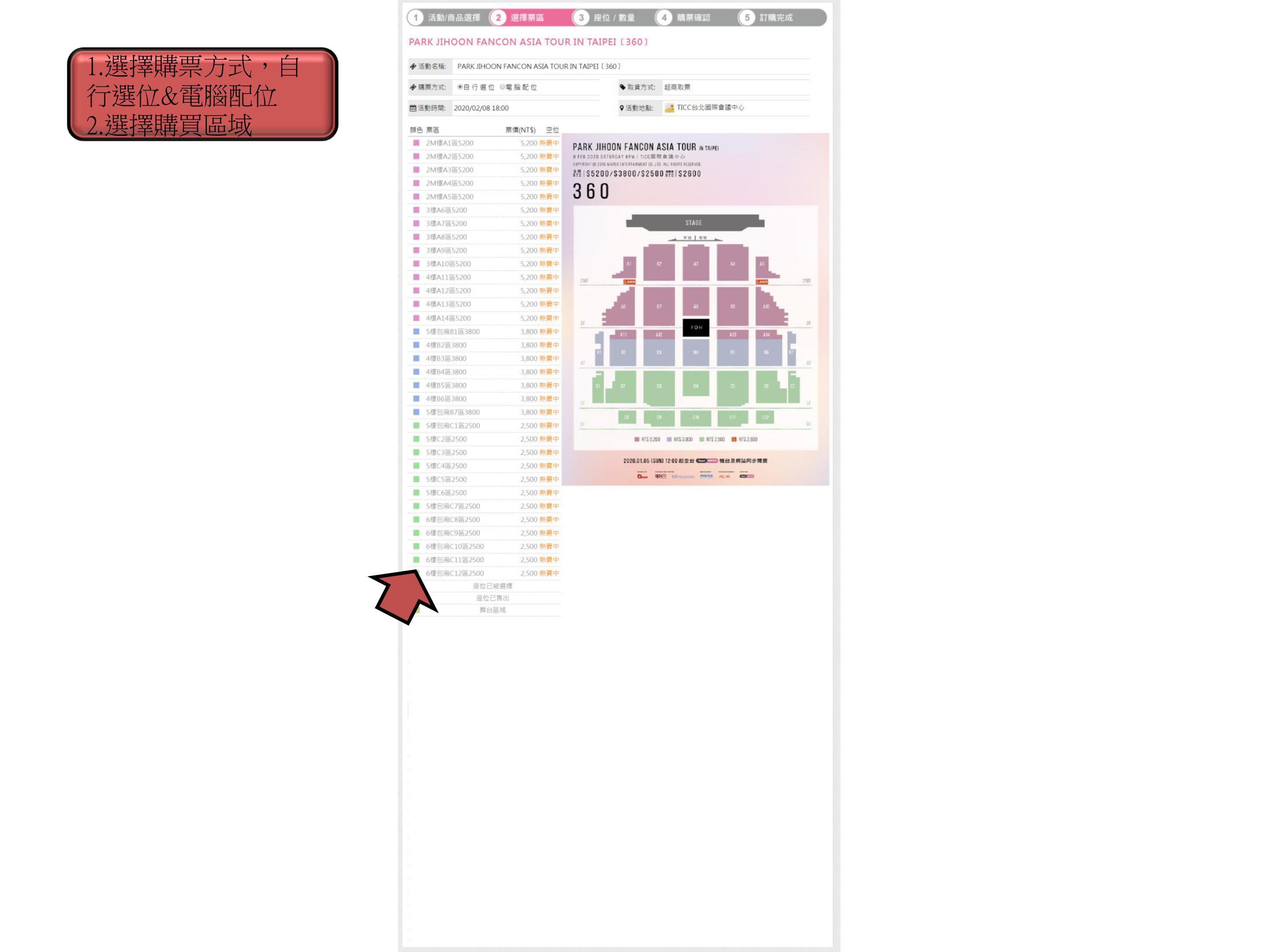 步驟5.點選【購票方式和座位區域】