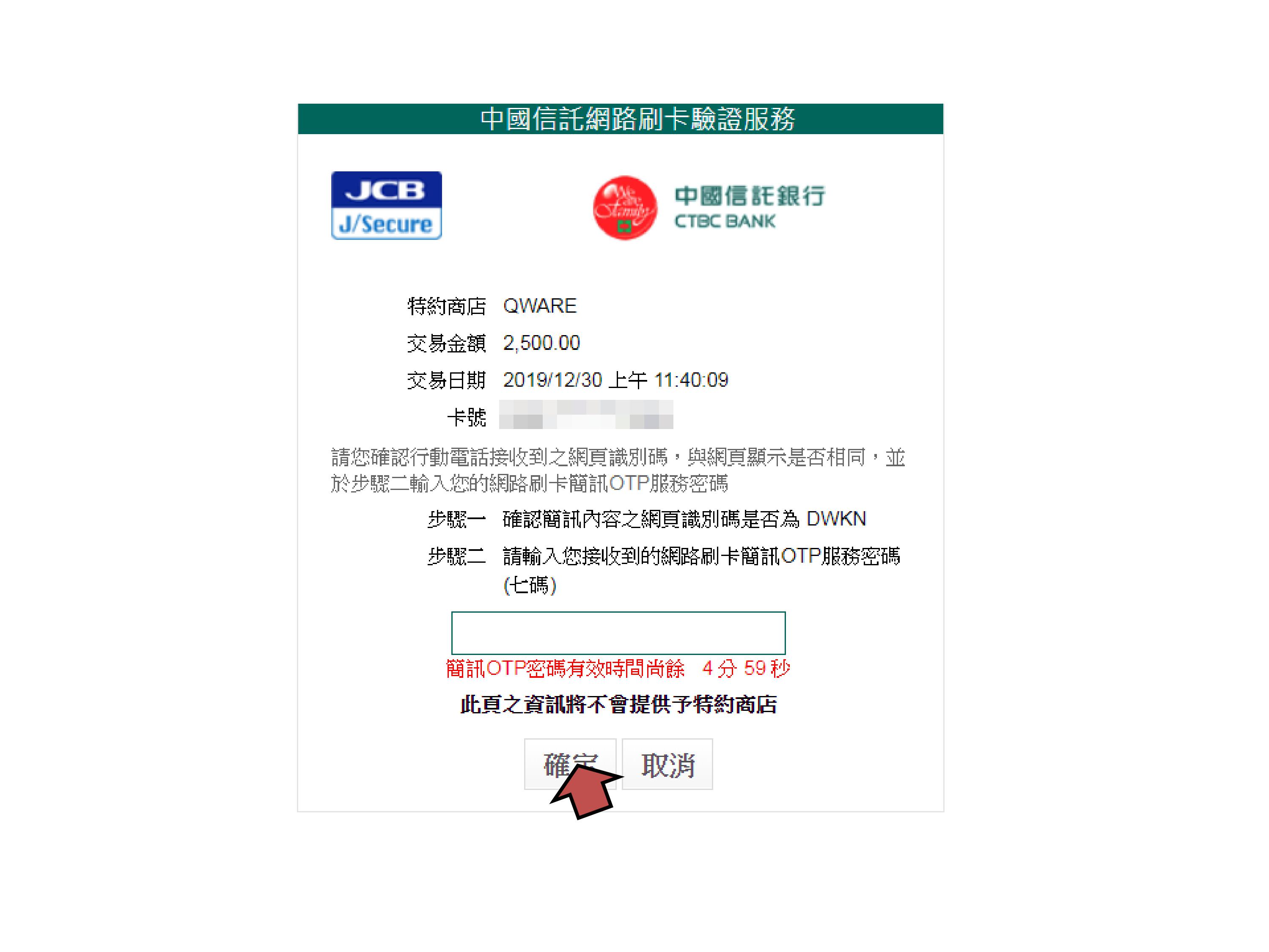 步驟10.若信用卡為3D驗證,則出現驗證頁面
