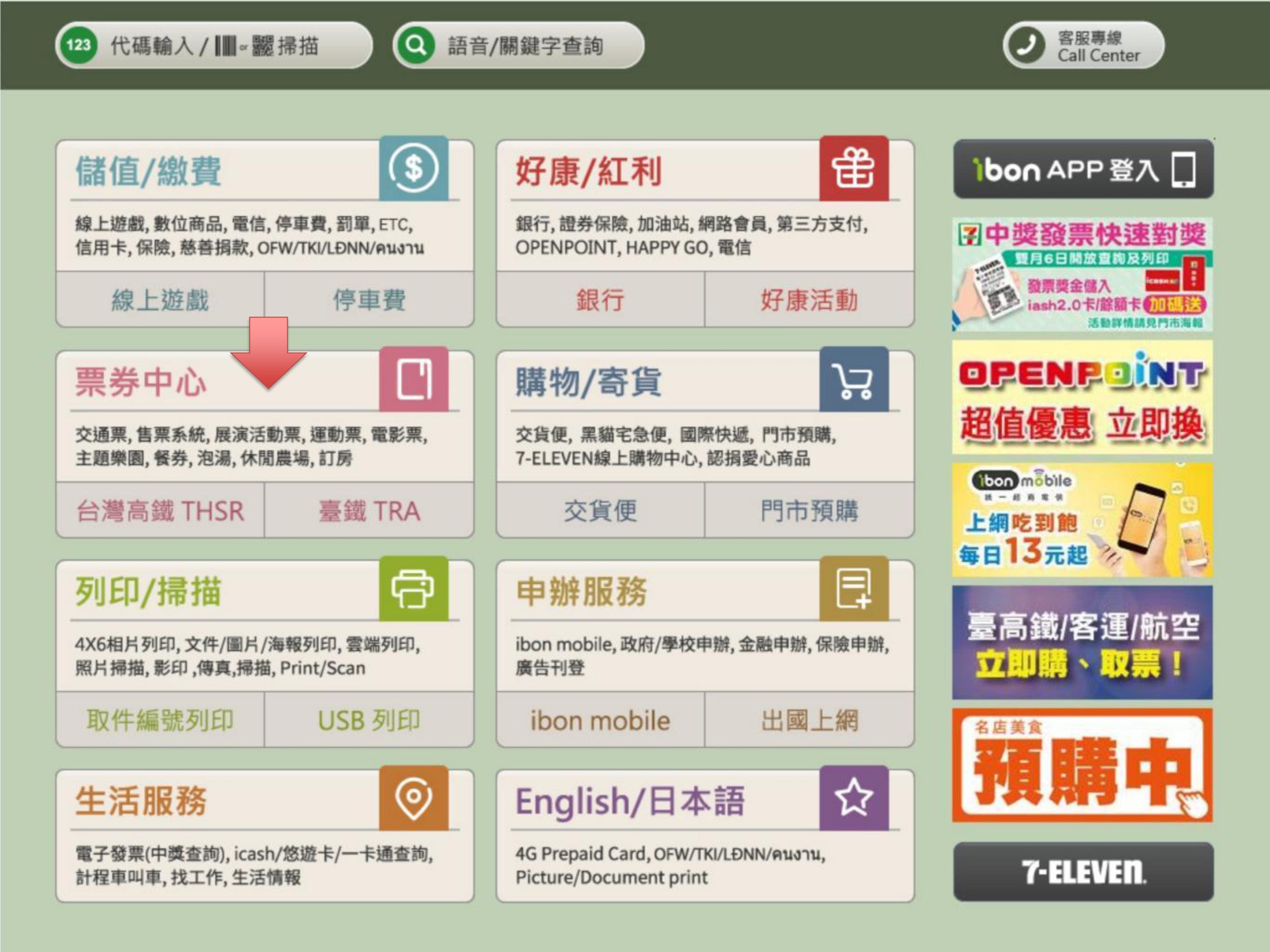 步驟8.列印繳費單並持取票單據至櫃檯領取ibon票券