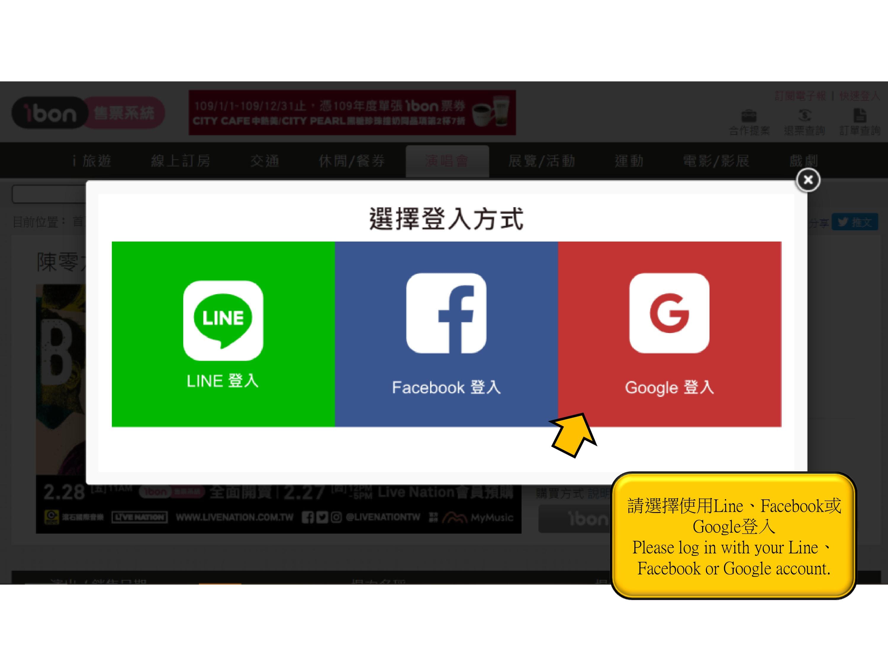 Step 3.Log in with your Line、Facebook or Google account