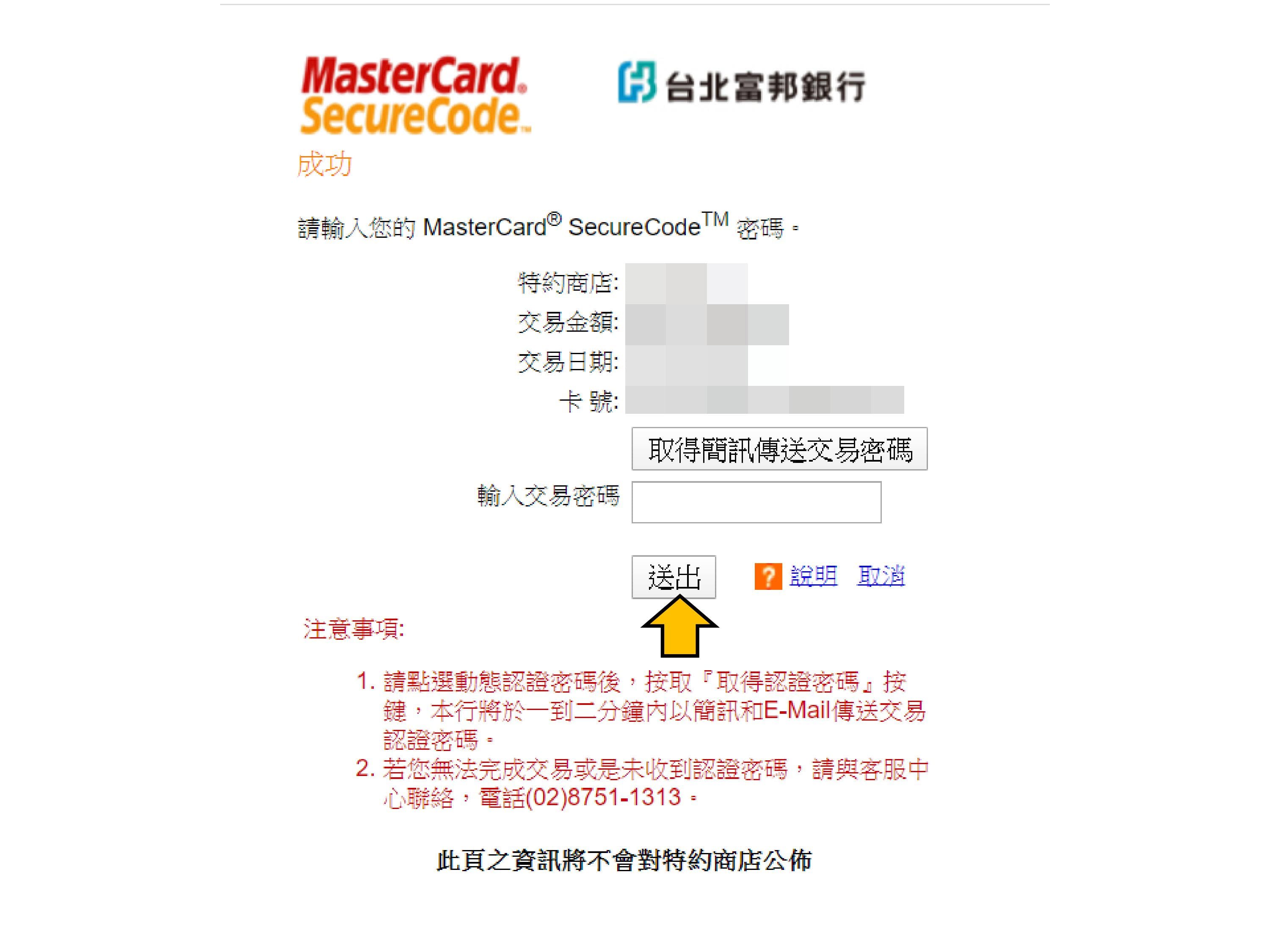 步驟11.若信用卡為3D驗證,則出現驗證頁面