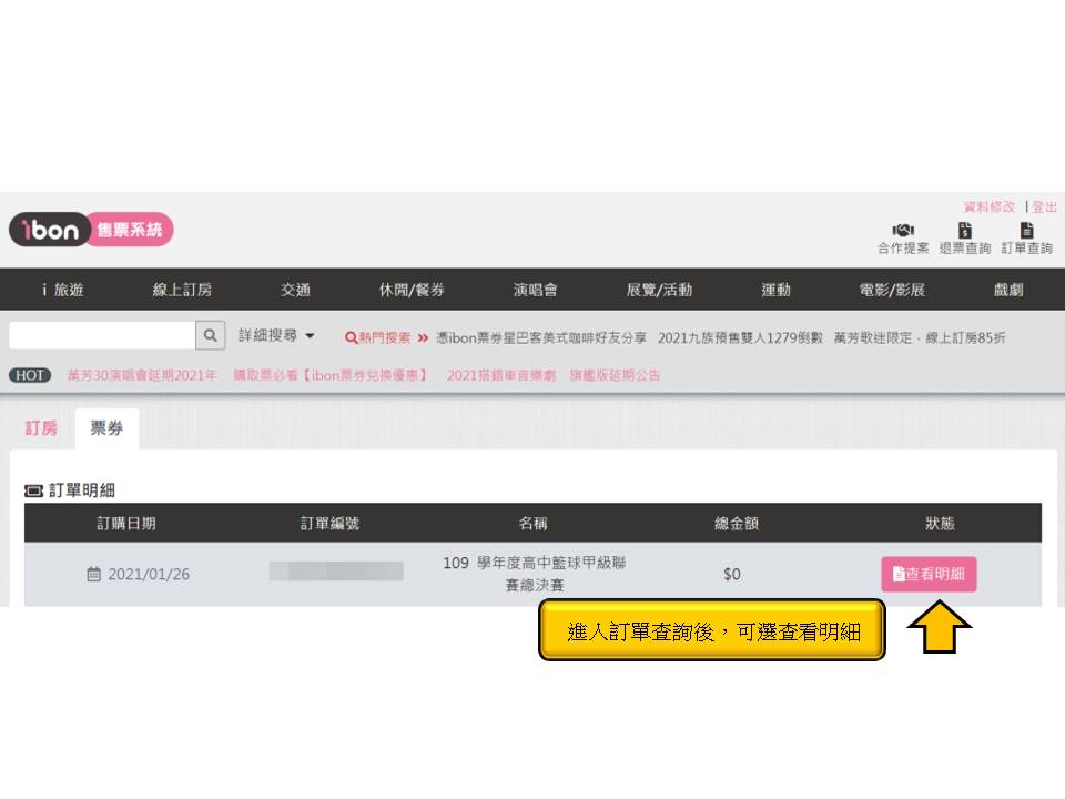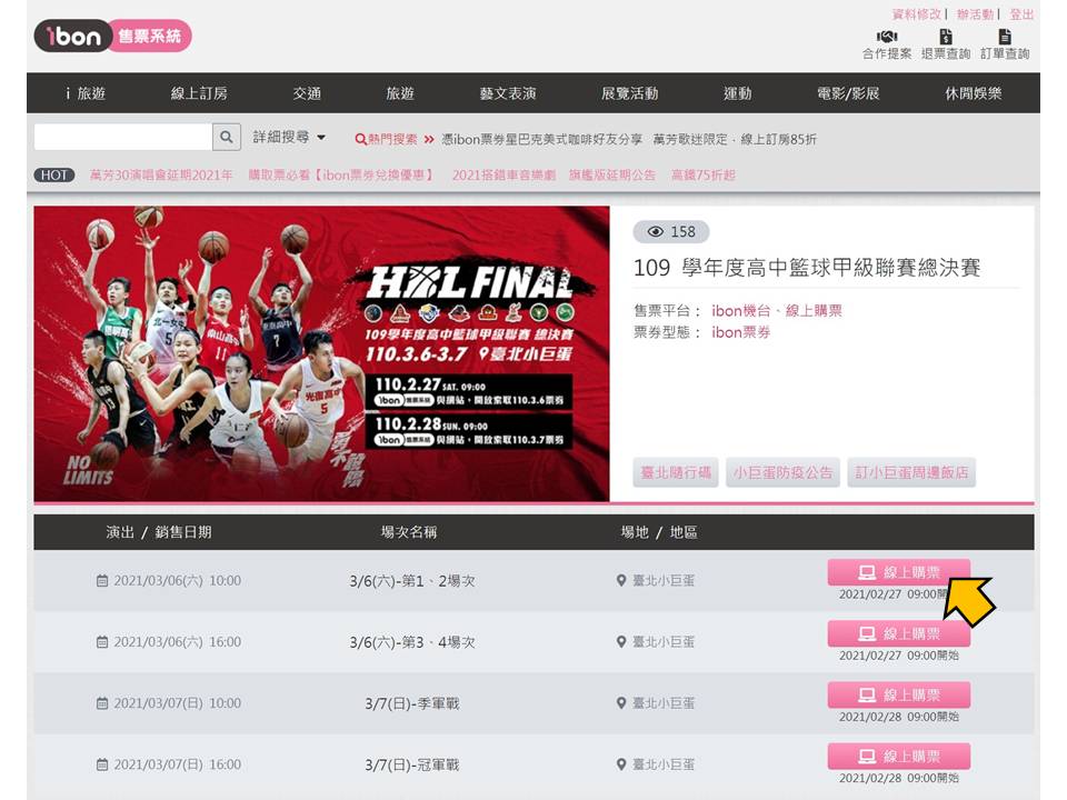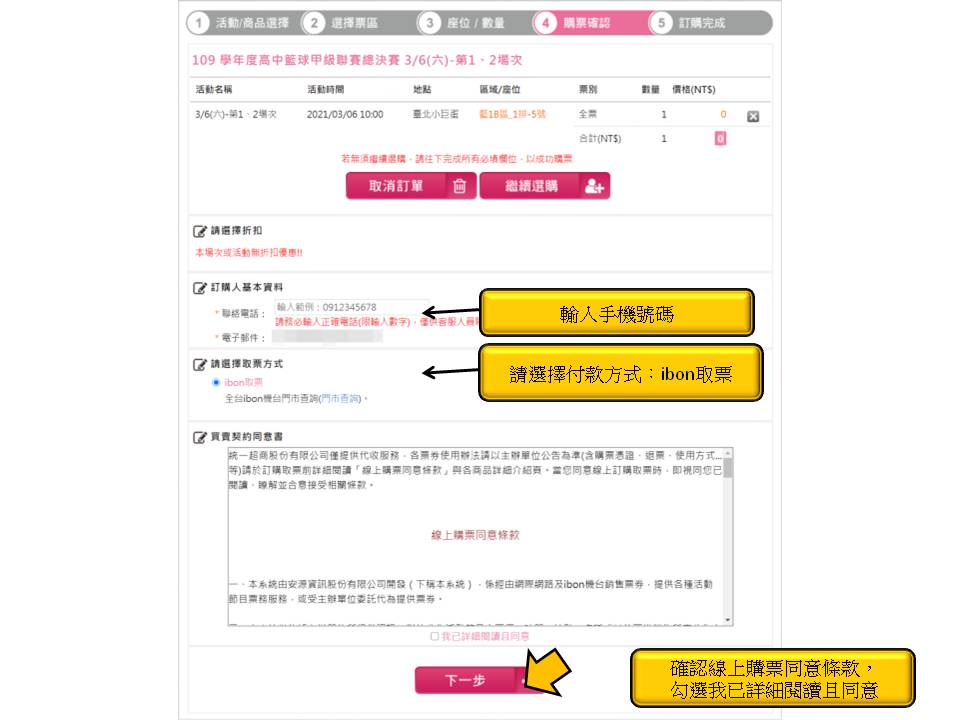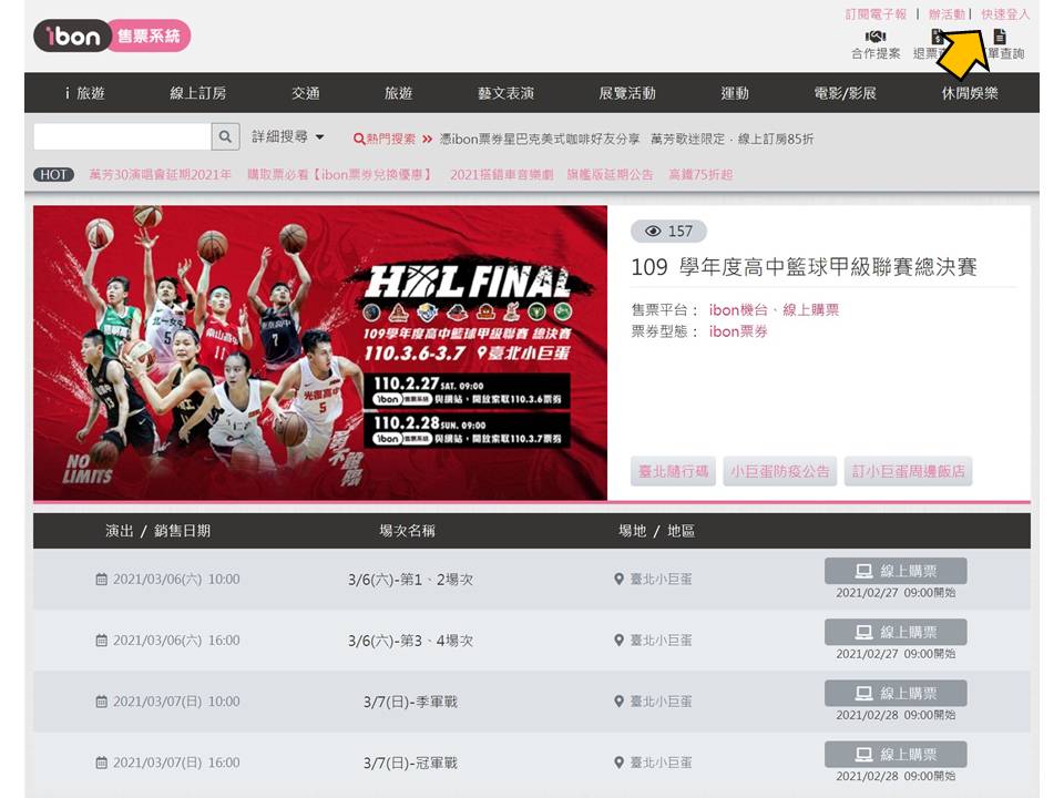【109 學年度高中籃球甲級聯賽總決賽】ibon 網站索票流程