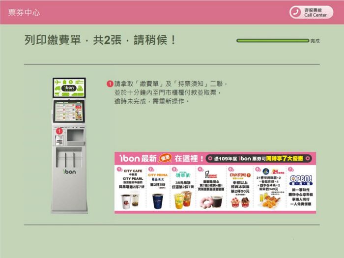 步驟5.列印繳費單並持取票單據至櫃檯領取ibon票券